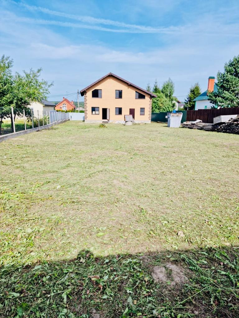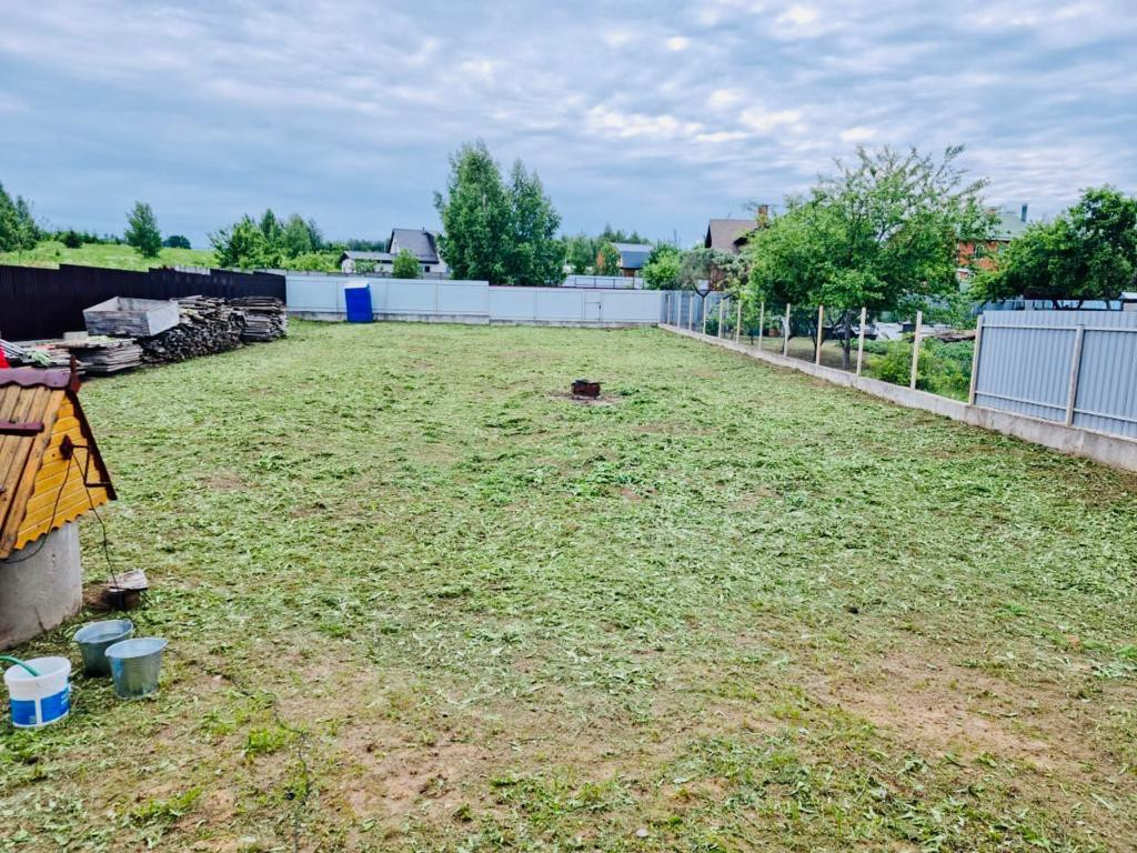 Участок 12,5 соток, огорожен капитальным забором из профнастила на монолитном фундаменте. Фасадная часть забора - строительная часть, которая предусмотрена замене после отделки дома.