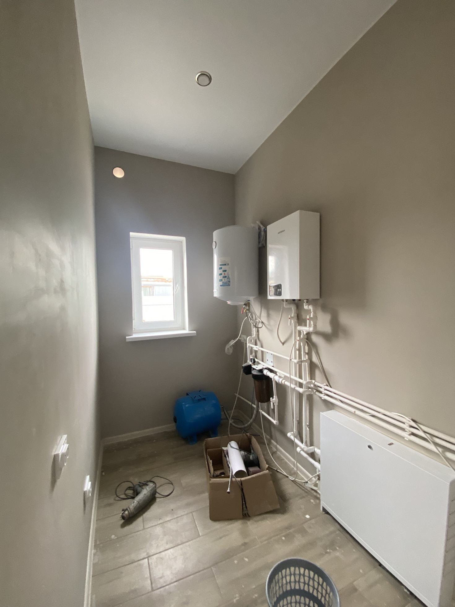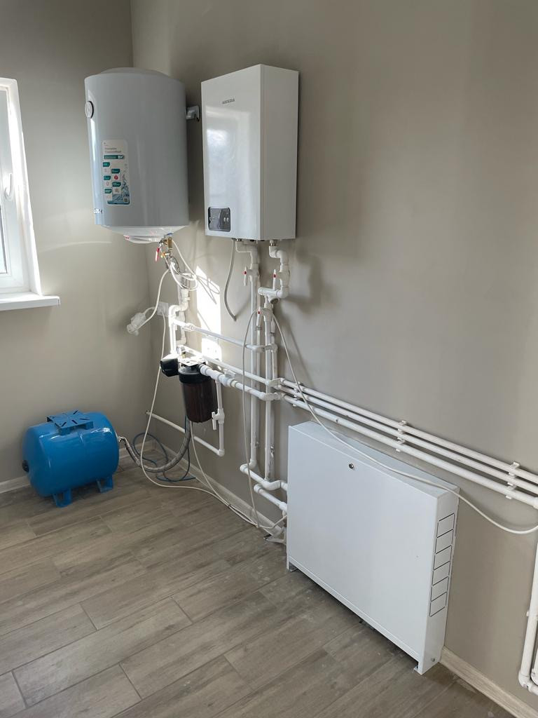 Коммуникации: электричество 15 кВт, септик автономный топас, скважина, тёплый пол водяной, гор/хол вода, интернет.