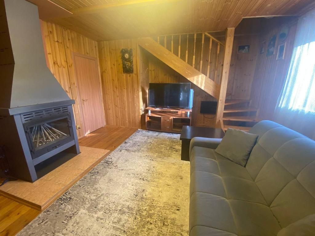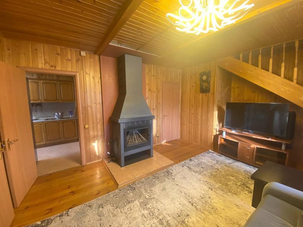 На 1 этаже расположены кухня, с/у, гостиная с камином; на 2 этаже - спальня и комната для отдыха. Общая площадь дома 90 кв.м.