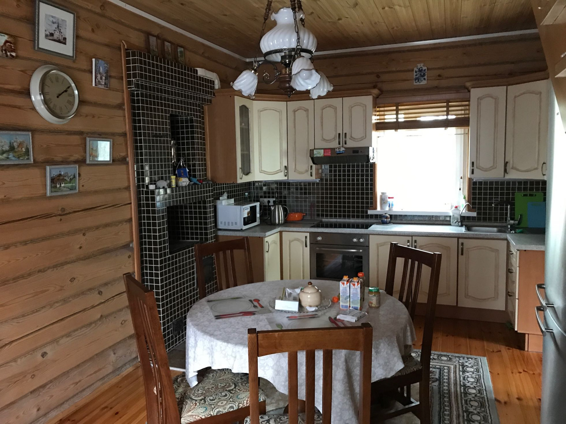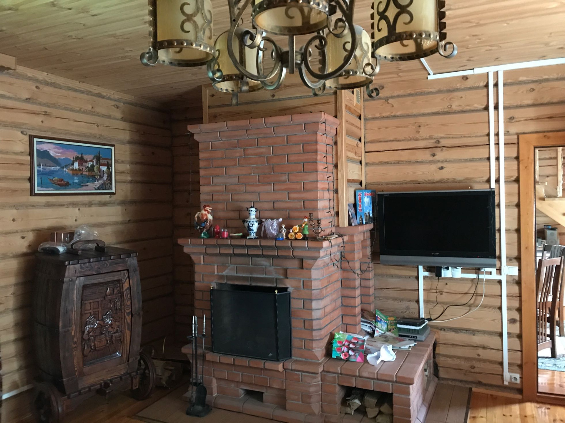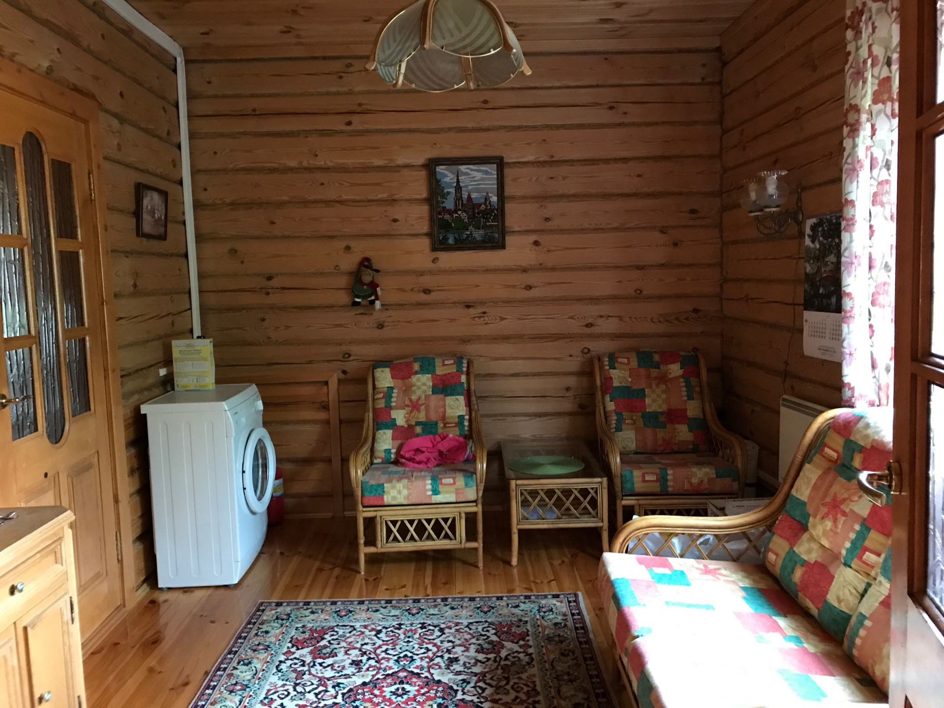 Из коммуникаций свет 10 кв.,вода из колодца 9 проведена в дом и баню,септик.Дом отапливается электрическими конвекторами,печь и камин