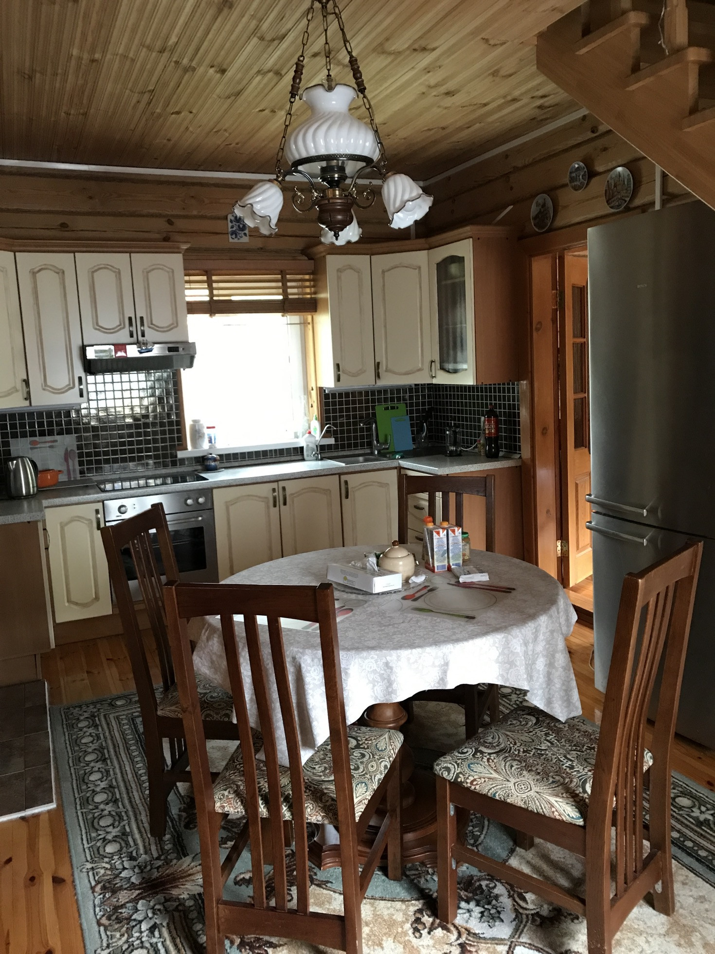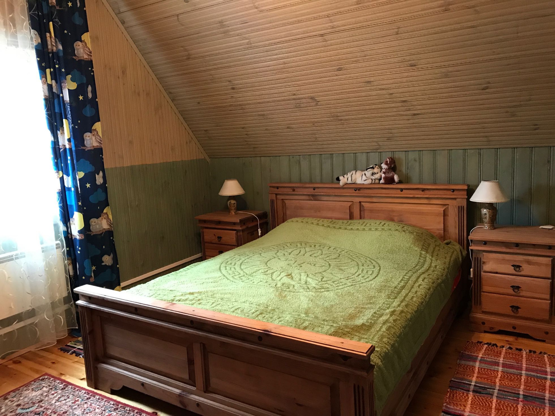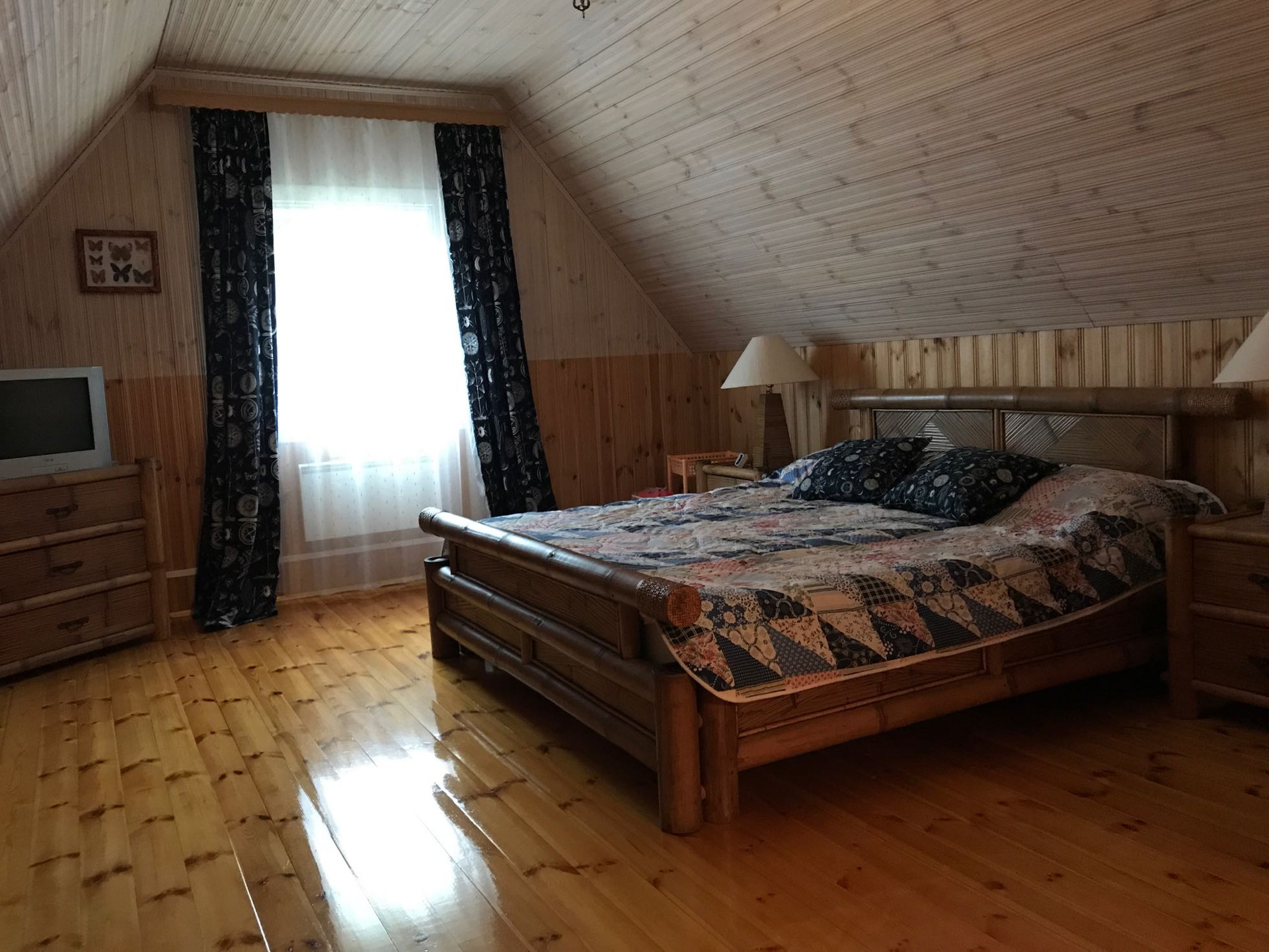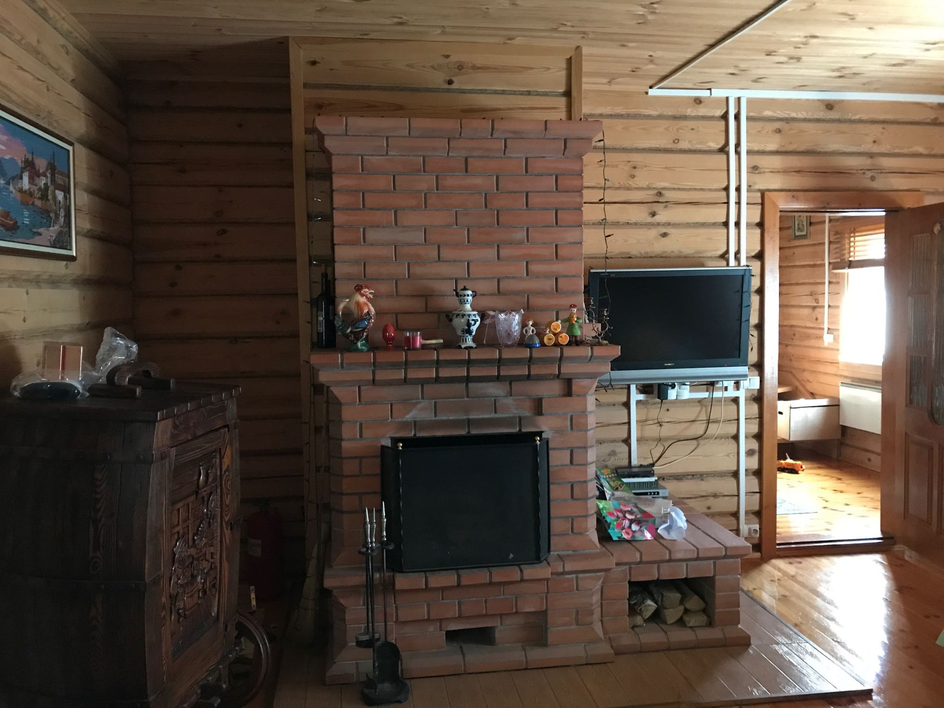 Из коммуникаций свет 10 кв.,вода из колодца 9 проведена в дом и баню,септик.Дом отапливается электрическими конвекторами,печь и камин
