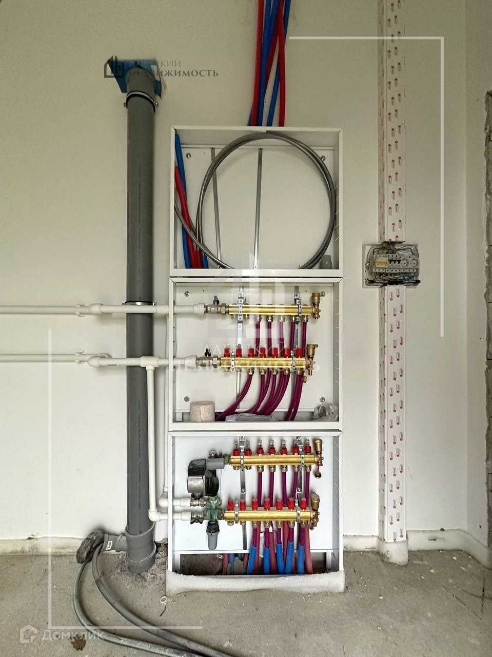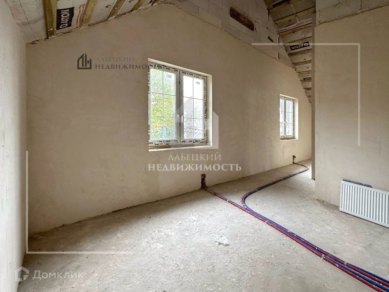 В доме произведена штукатурка внутри, дом находится под отоплением (первый этаж - теплый пол), произведена разводка сантехники, готов дизайн-проект электрики.