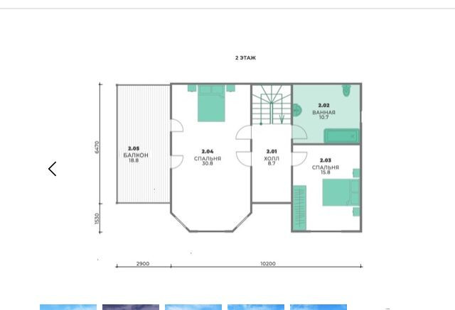 2 Этаж: балкон, 2 спальни, холл, ванная;