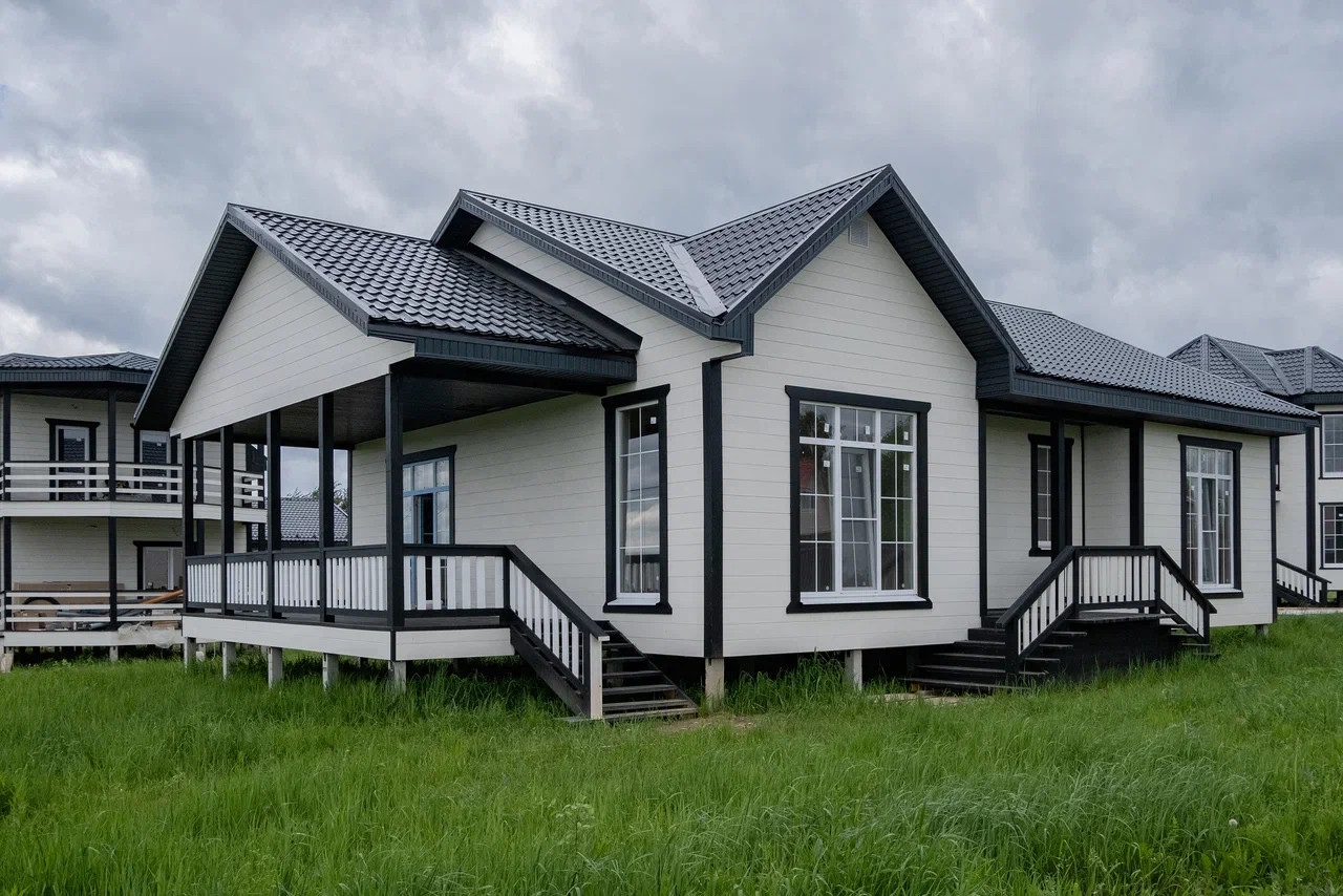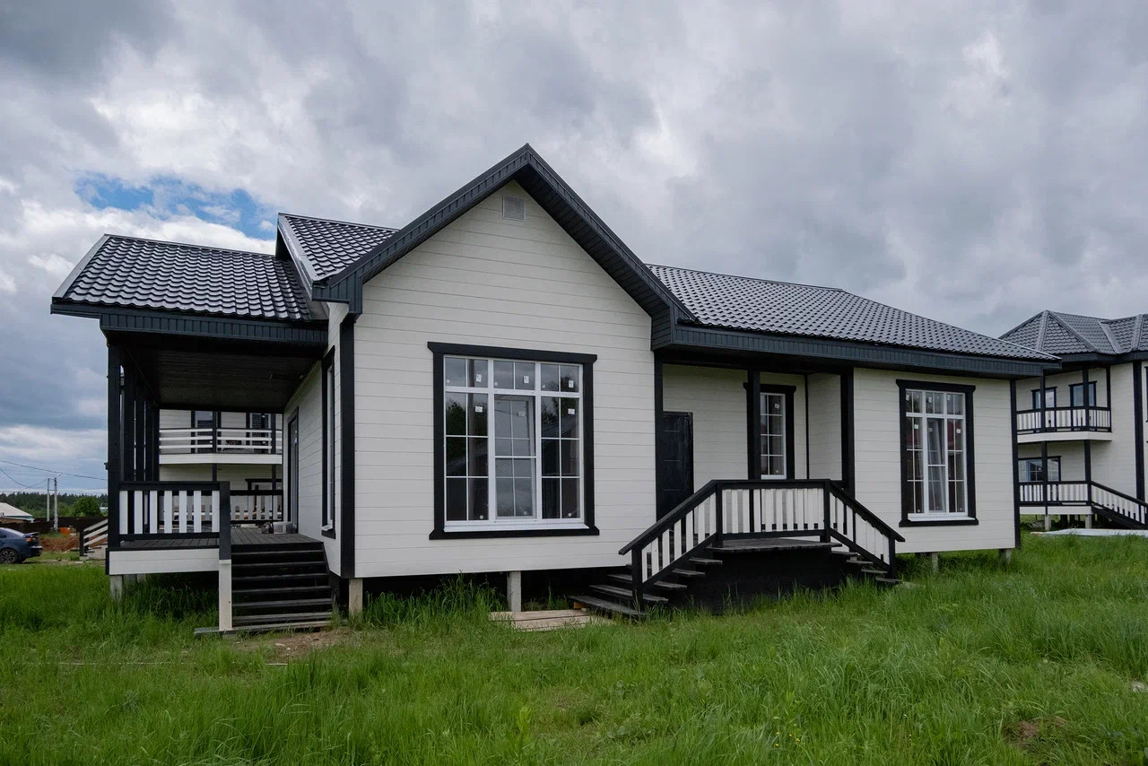 Стильный фасад и грамотно продуманная планировка. Кухня - гостиная, три просторные светлые спальные комнаты, санузел и ванная комната, тамбур, гардеробная комната, выход с зоны кухни-гостиной на большую террасу. В доме установлены панорамные теплые окна Veka в 3 стекла с энергосбережением.