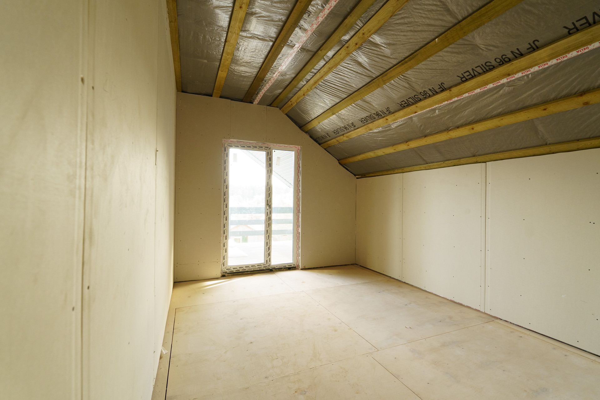 Проект предусматривает удобное и практичное архитектурное решение. На первом этаже совмещенная кухня-гостиная, комната, гардеробная комната и тамбур, выход на террасу. На втором этаже 3 спальни. На обоих этажах предусмотрены санузлы.