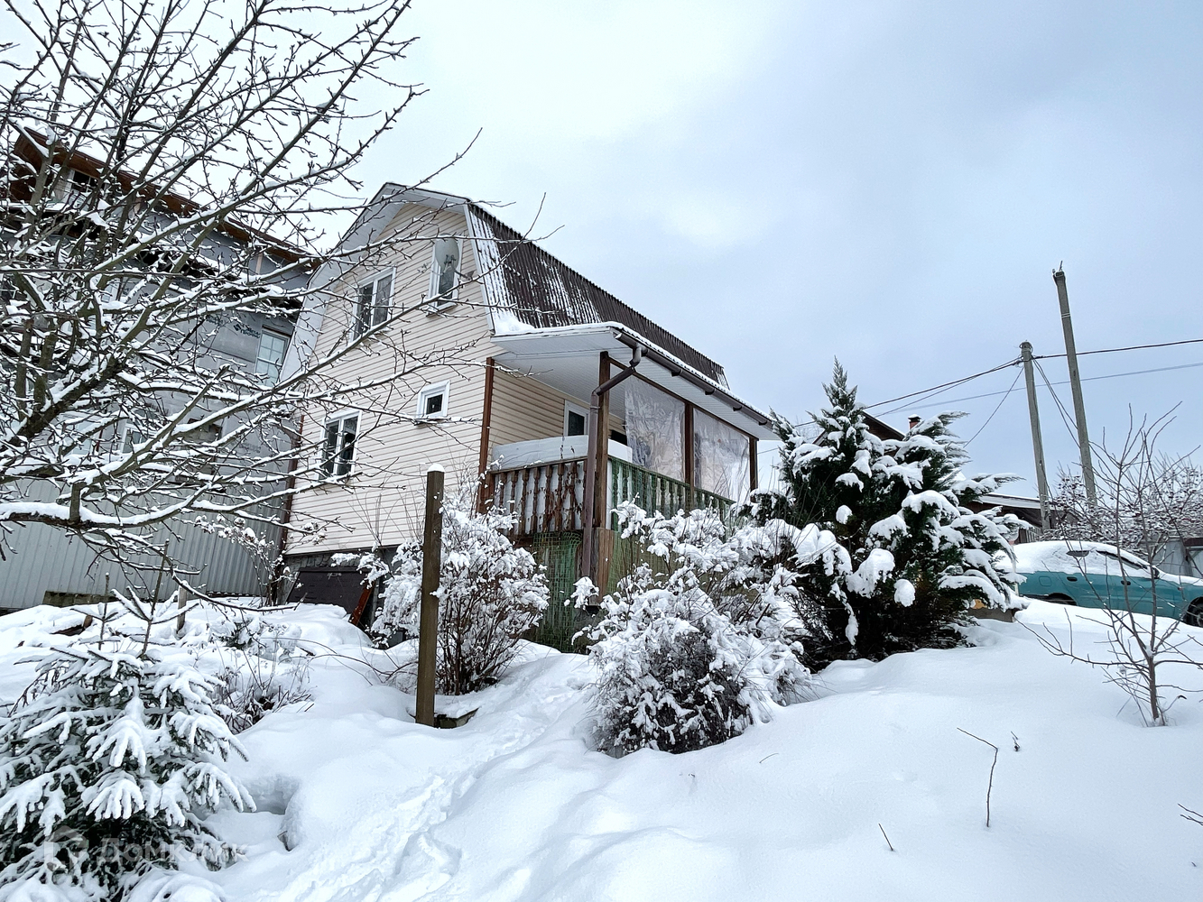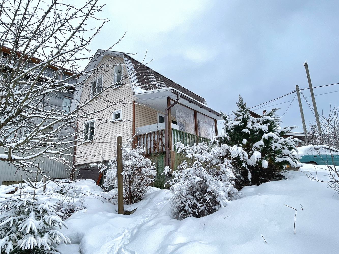 Общая площадь дома - 70 кв. м. Дом утепленный, каркасно-щитовой, пригоден для круглогодичного проживания. Отопление осуществляется электрическими радиаторами. Дополнительно установлена каминная печь. В дом заведена вода из колодца (13 колец), канализация, установлен электрический водонагреватель. На первом этаже установлен санузел и большая кухня-гостиная, на втором этаже большая изолированная спальня и холл, который можно оборудовать под комнату. Дом в хорошем состоянии - заезжай и живи .