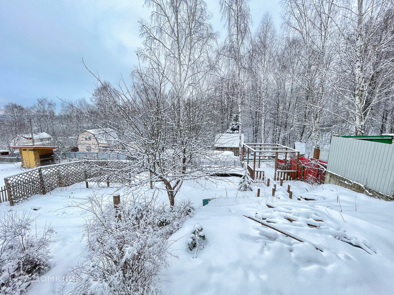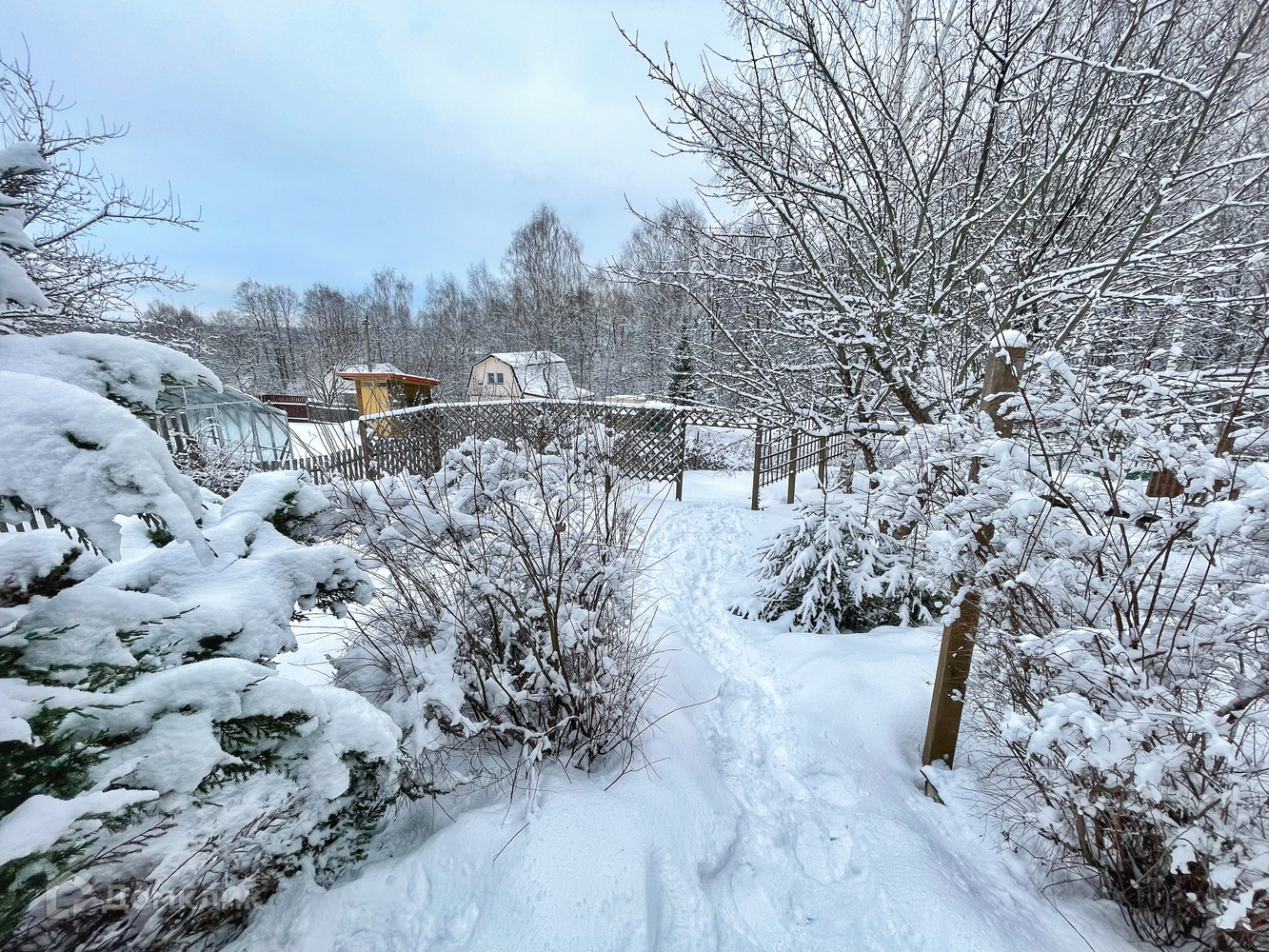 Участок правильной формы - 6 соток с уклоном, поэтому участок сухой и не требует дренажирования. На участке имеются плодово-культурные насаждения. Вдоль северной окраины деревни протекает река Нара (10 минут пешком).