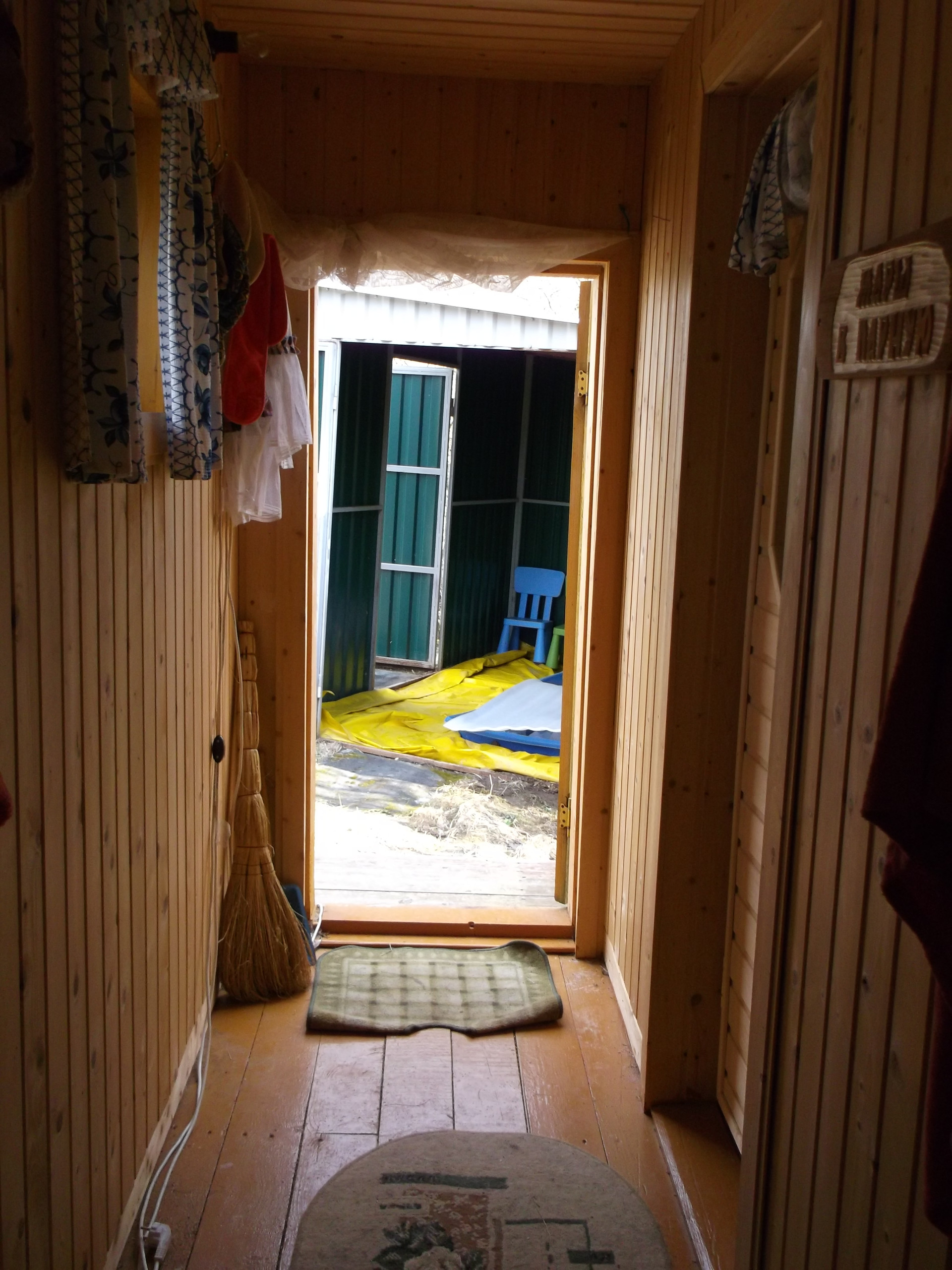 - крепкий отдельно стоящий зимний домик из бревна с кирпичной печью ( для живности и теплой комнатой с нашестами для курей)