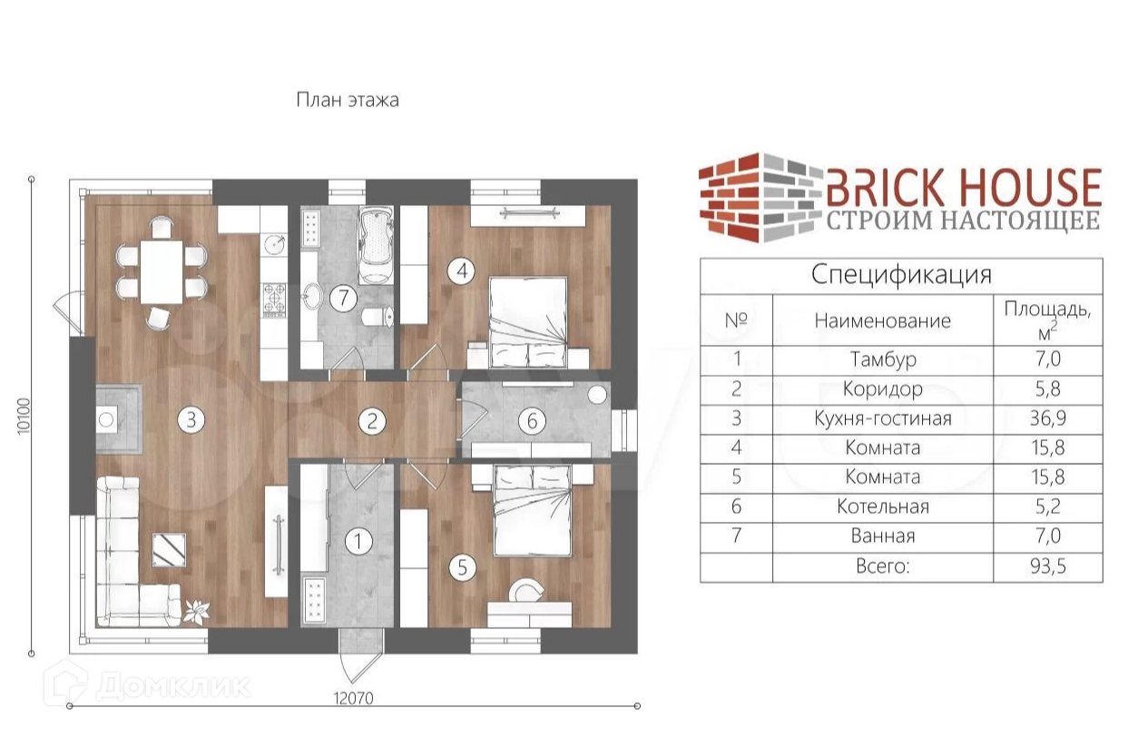 Общая площадь дома 93,4 м2