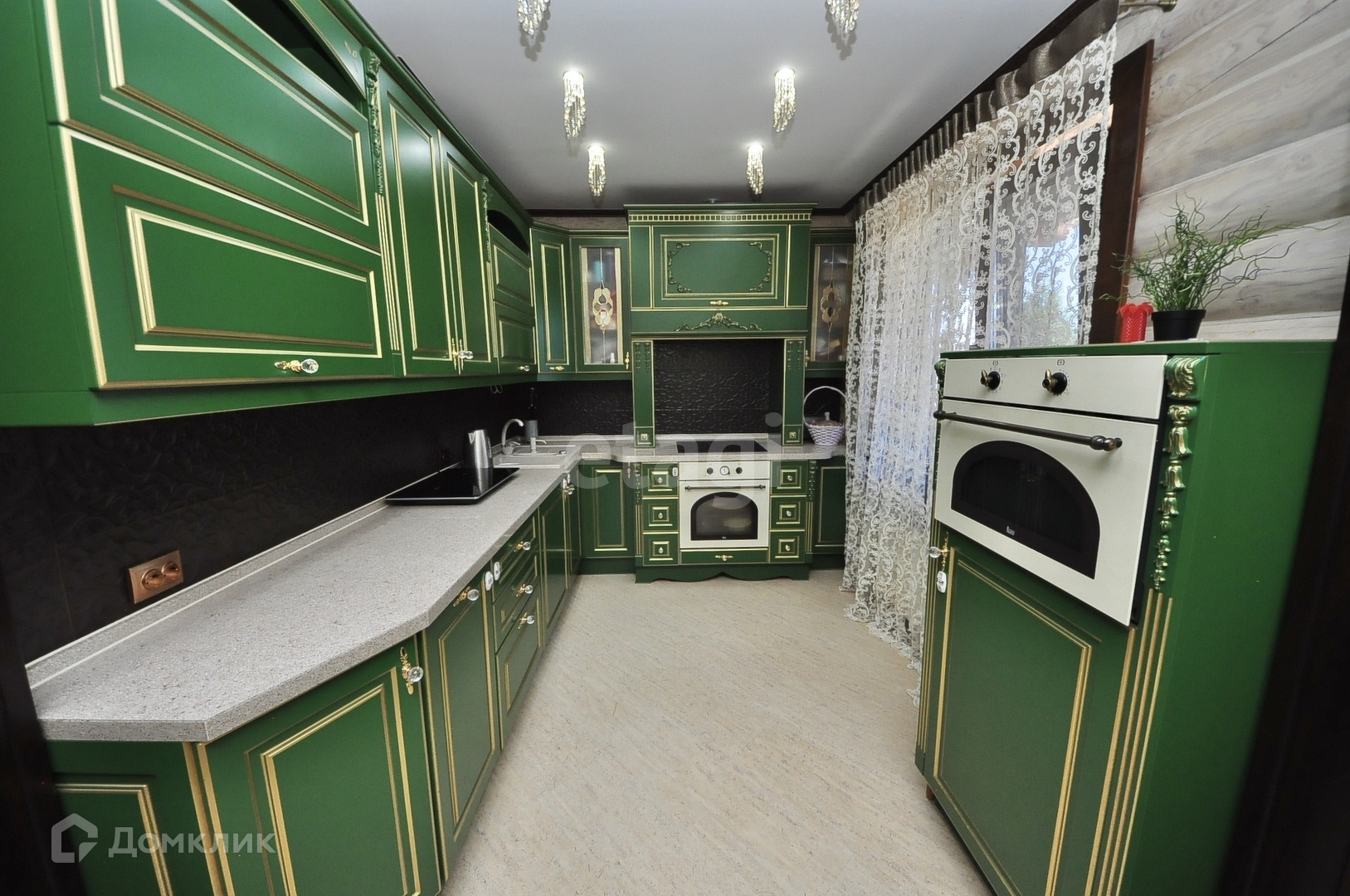 - встроенная кухня фирмы «Dallas», вся кухня оборудована встроенной техникой: посудомойка, стир. машинка с системой сушки, микроволновка, индукц. плита, вытяжка, встроенный холодильник.