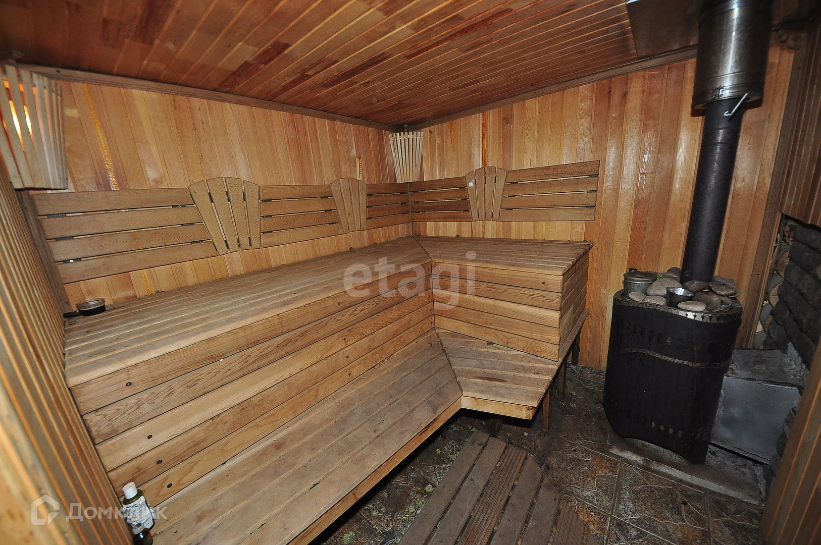 Баня, 32,7 кв.м. из оцилиндрованного бревна, отдельно стоящая, двухэтажная, 2эт. можно использовать как жилую- гостевую, оборудован балконом, пол выложен ламинат. Парная сделана из доски канадского кедра.