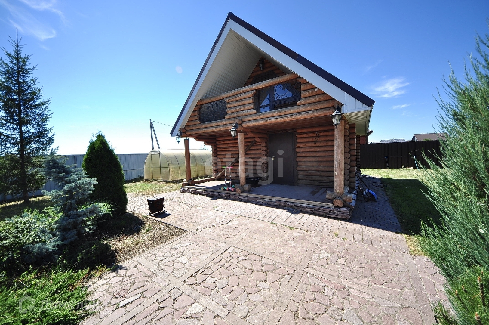 На территории есть бассейн, погружная чаша бассейна, размер 2,2*1,4, глубинной 1,5м, беседка из оцилиндрованного бруса, на 20чел., установлена теплица.
