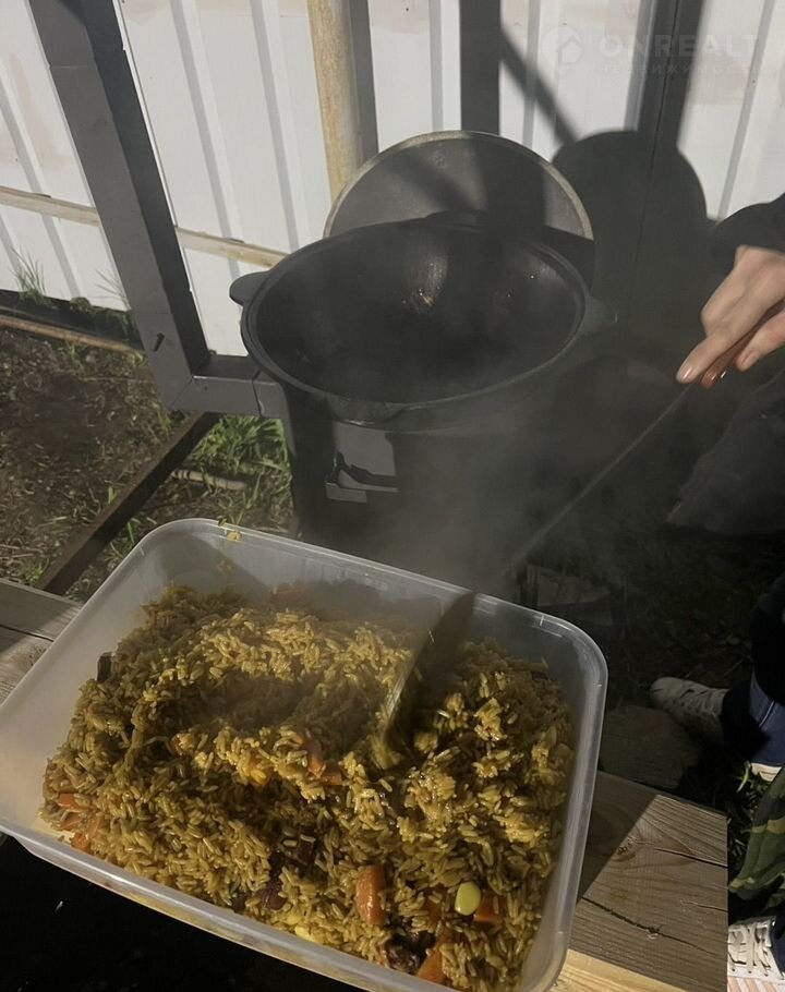 Hа учacтке имeетcя мaнгальная зонa, мaнгaл, казaн, cтoл, cкaмeйка.