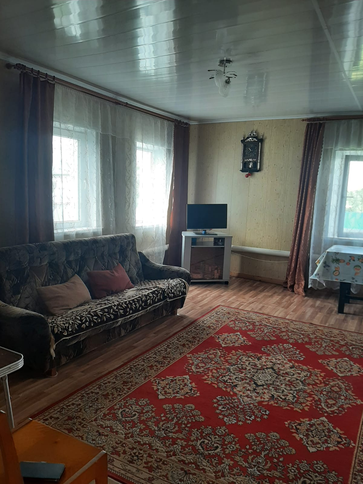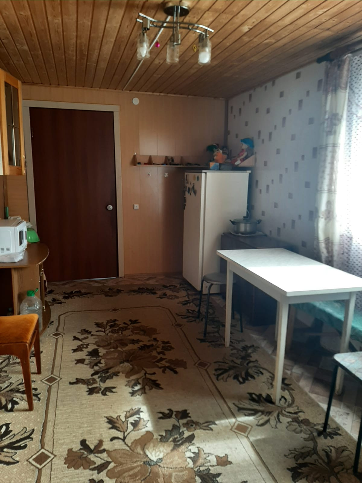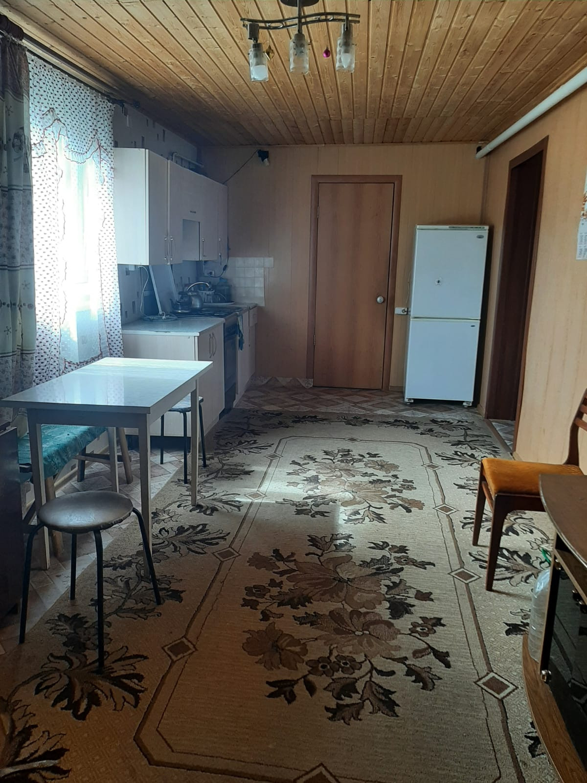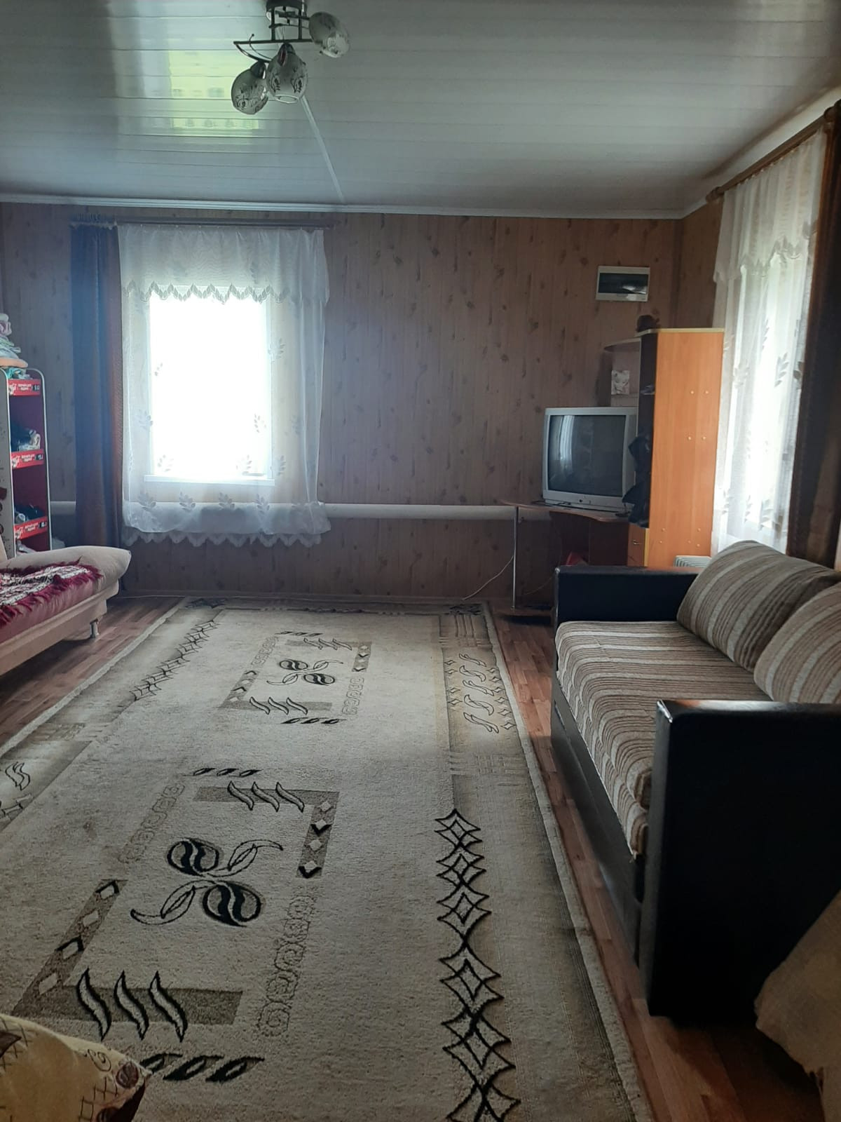 просторные две комнаты 29,6+21,2кв.м, кухня- прихожая 25,8 кв.м.обшита вагонкой.( при желании можно сделать перегородку),внутри дом обшит панелью, на полу линолеум, централизованный газ, отопление газовое, водоснабжение проведено, установлен водо обогреватель, санузел в доме, установлена ванна. Есть погреб.