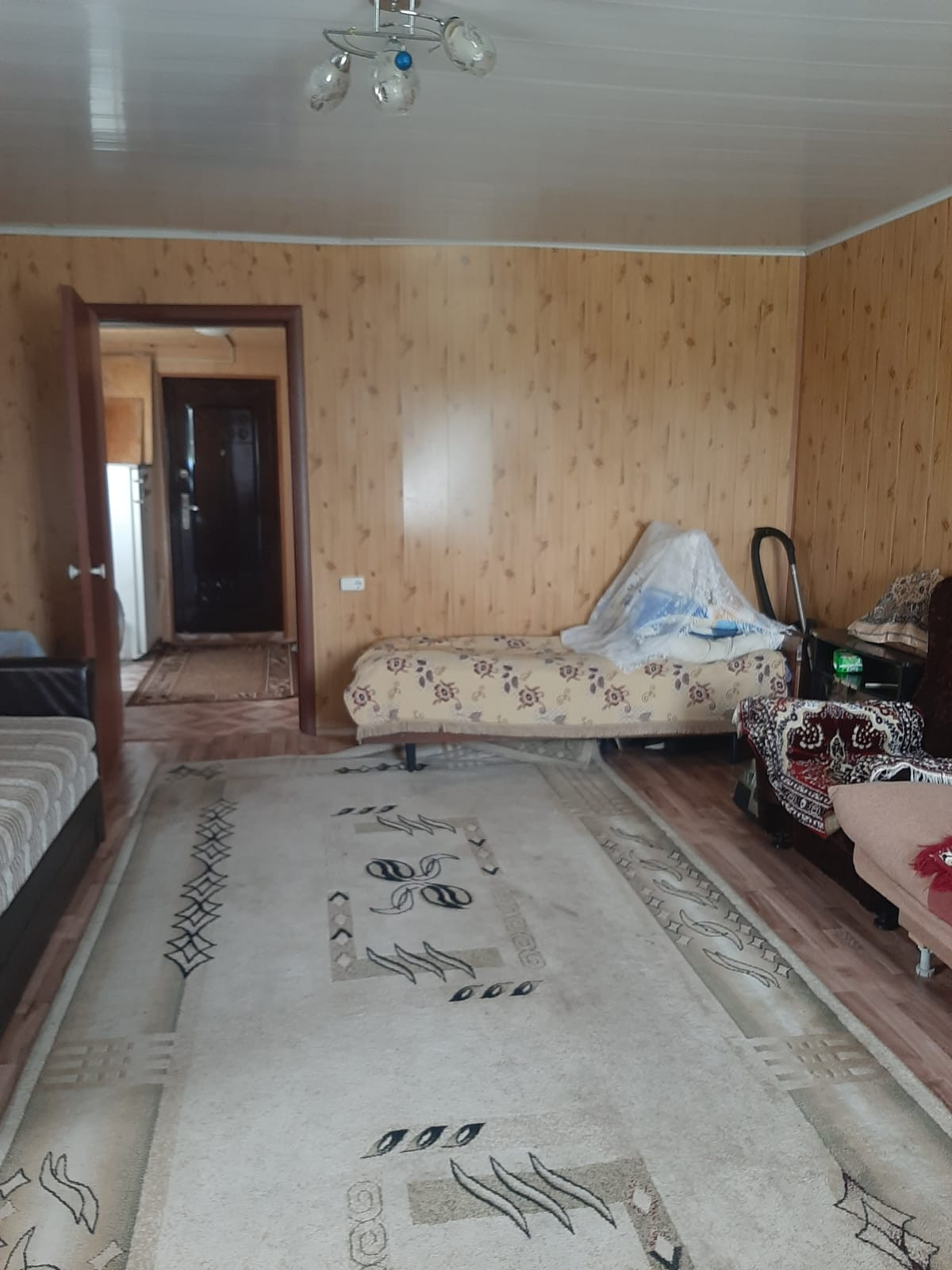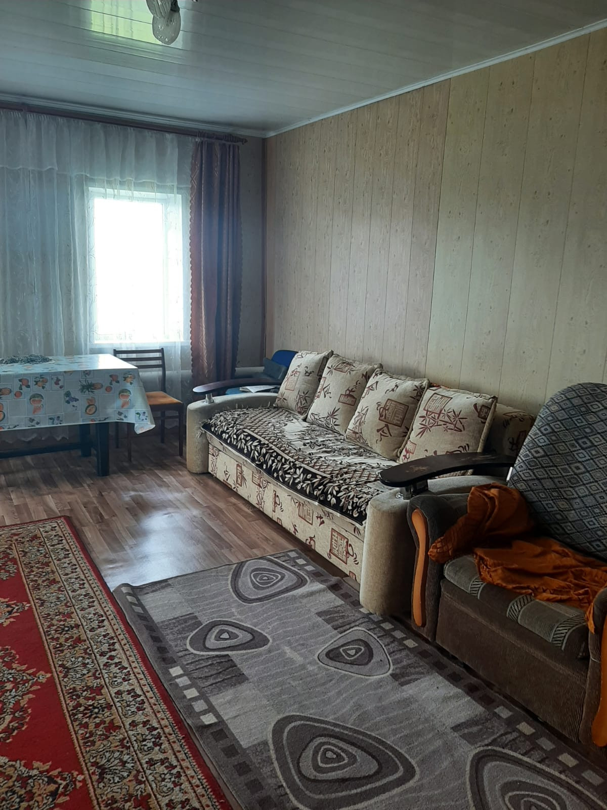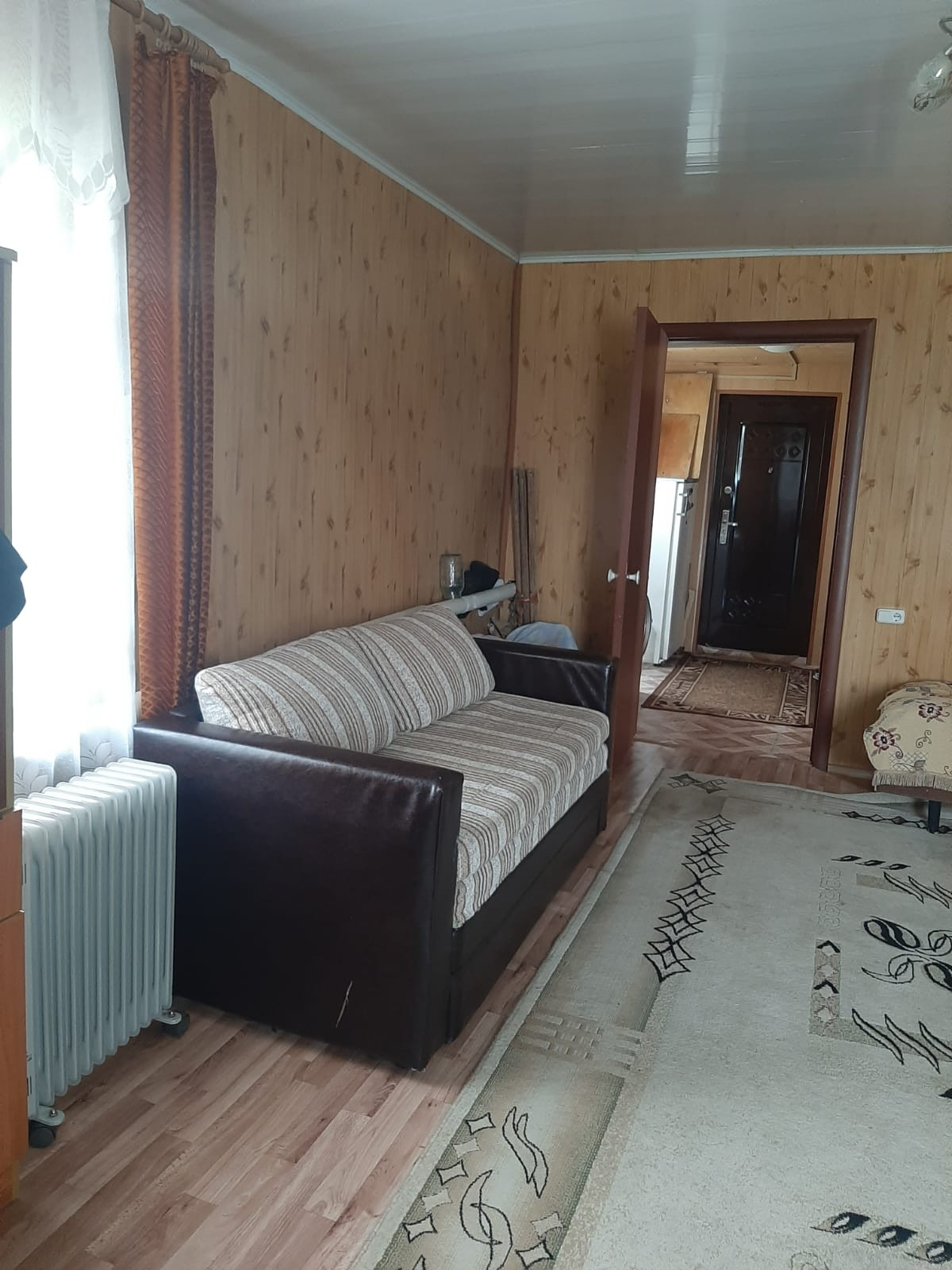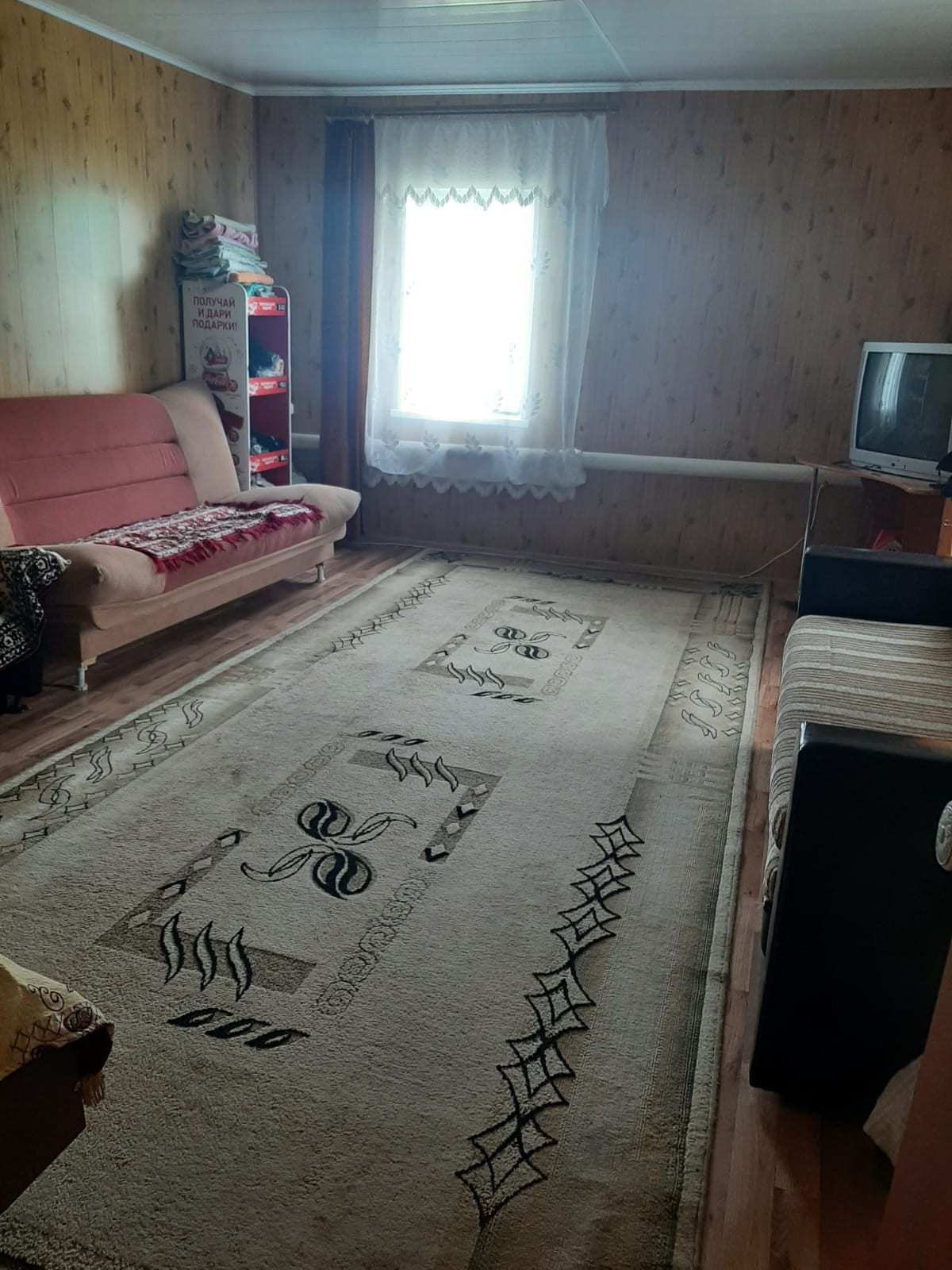 просторные две комнаты 29,6+21,2кв.м, кухня- прихожая 25,8 кв.м.обшита вагонкой.( при желании можно сделать перегородку),внутри дом обшит панелью, на полу линолеум, централизованный газ, отопление газовое, водоснабжение проведено, установлен водо обогреватель, санузел в доме, установлена ванна. Есть погреб.