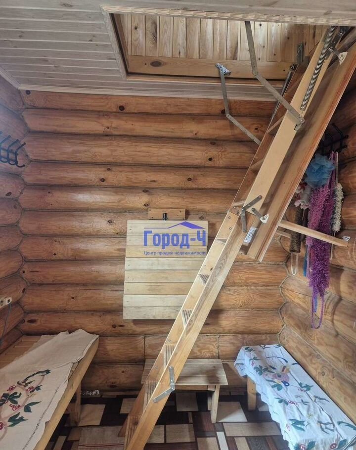 С предбанника есть вход на второй этаж по лестнице, которая раскладывается На втором этаже полноценная комната с двухспальной кроватью, с местами для хранения вещей.