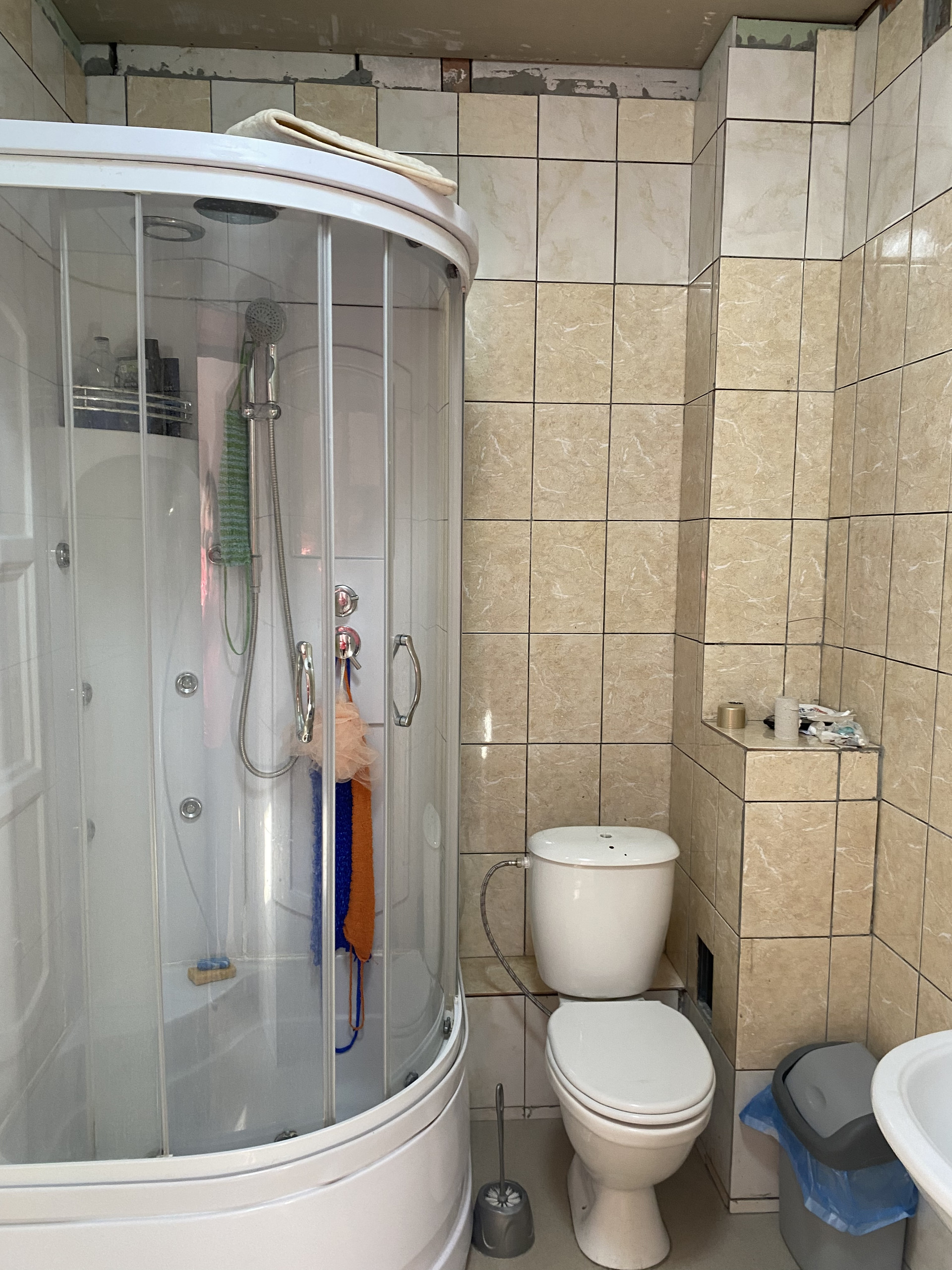 1 этаж: чистовая отделка , кафель на полу, сантехника, хол, помещение для кухни, место для выгрузки товаров , сан.узлы.