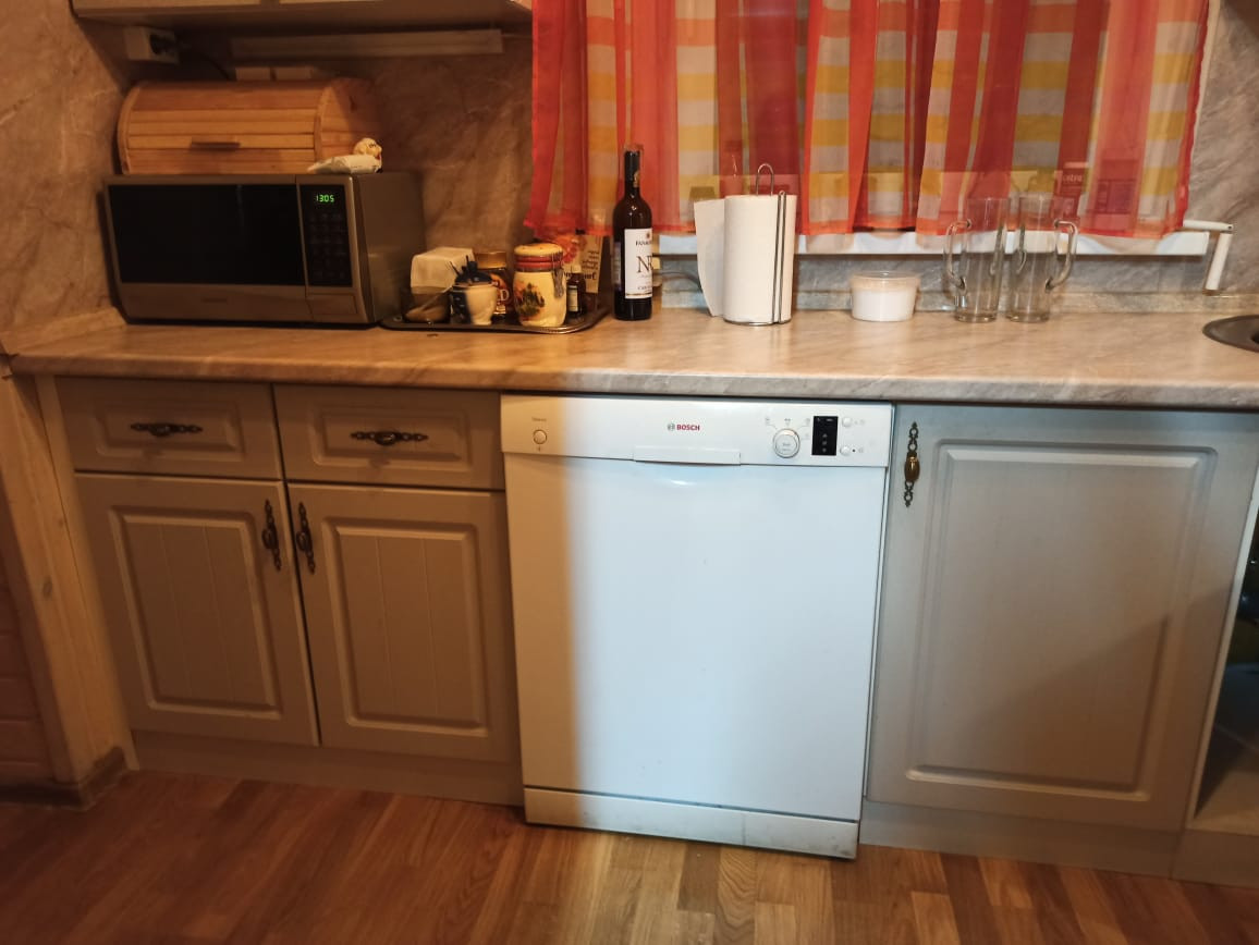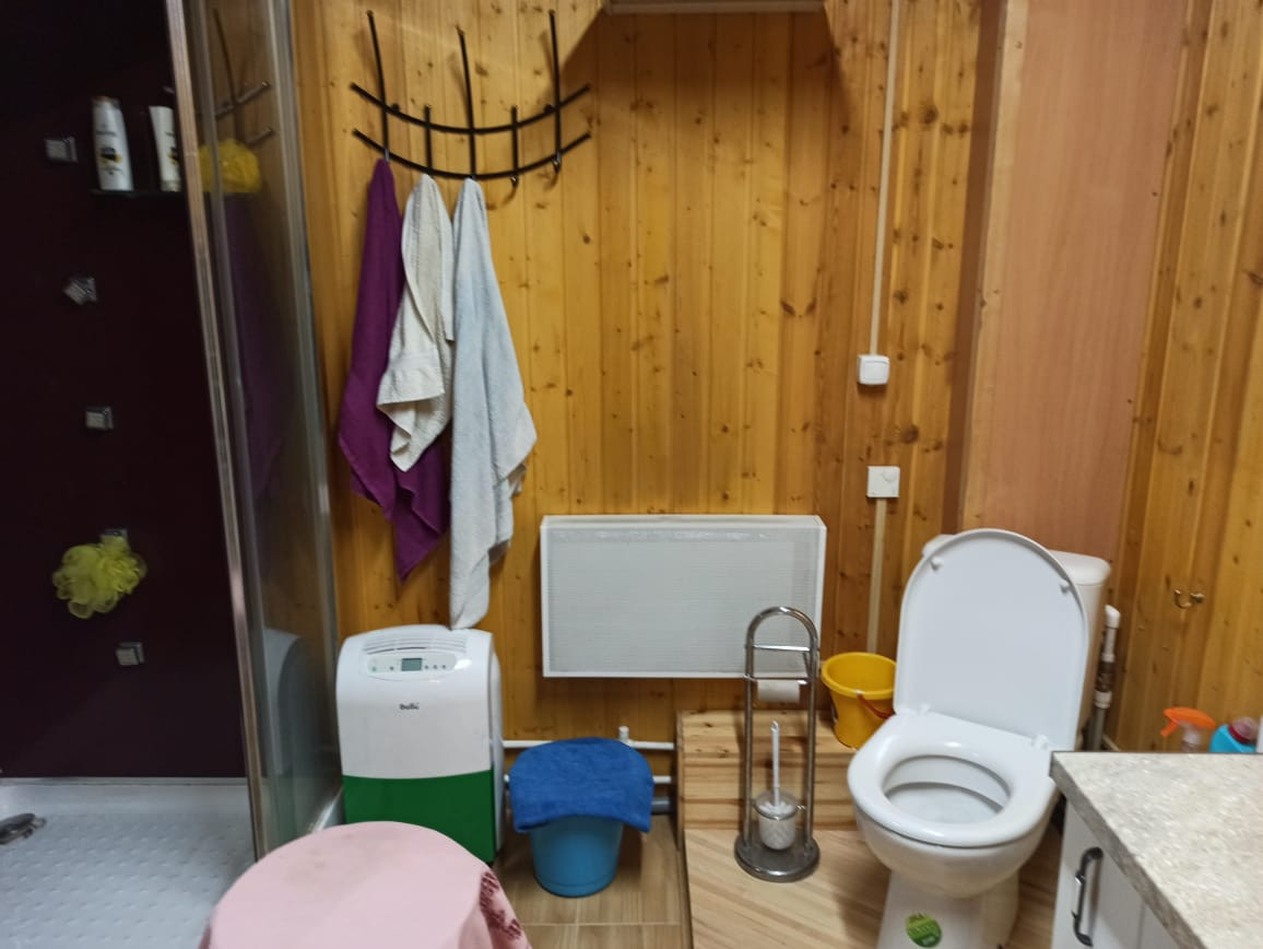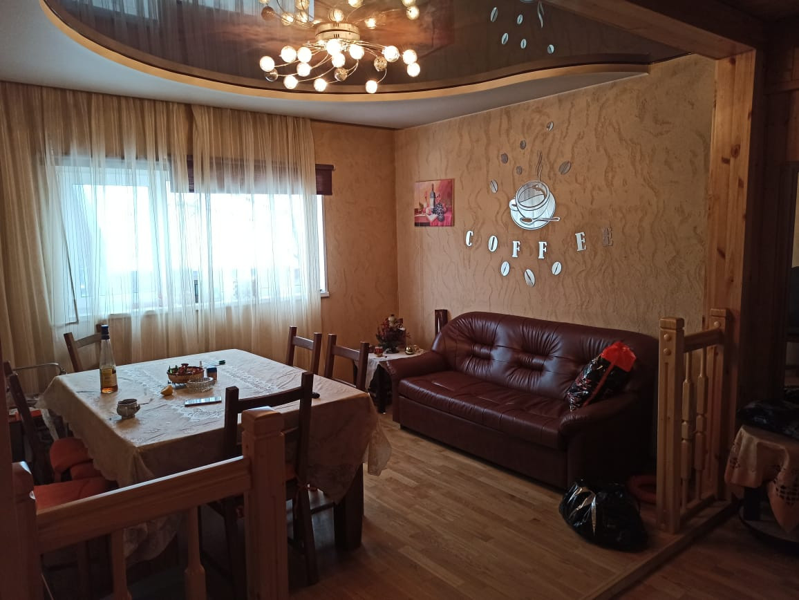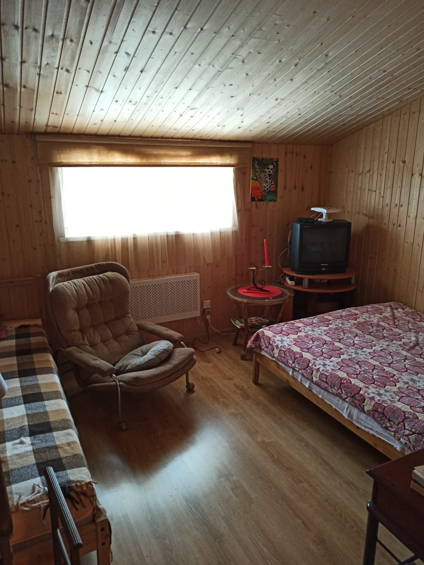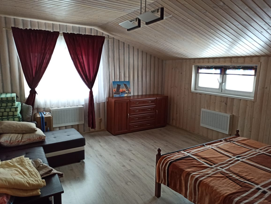 Двухэтажный дом из сип-панелей 161 кв.м жилой площади, без учета уличной террасы. Дом подготовлен для круглогодичного проживания. Температура внутри не опускается ниже 10 градусов, даже если долго не протапливать. В доме в общей сложности 5 больших жилых комнат, 4 на 2-ом этаже и 1 на первом, полностью мебелированы. Огромный холл с большим обеденным столом и большим плазменным телевизором. Помещение с печкой можно также полностью отделить раздвижными дверьми. Имеется 2 санузла по 1-му на этаже, на первом этаже санузел с душевой кабиной и стиральной машинкой. Бойлер на 100 литров воды. Кухня оборудована всей необходимой техникой, включая посудомоечную машинку и газовую плиту с духовкой, газ выведен отдельно на улицу в баллонах. Уличная терраса полностью отделяется прозрачными роль-ставнями, поэтому можно сидеть и зимой. Делали всё для себя, поэтому денег на технику и мебель не жалели. Подключен также высокоскоростной интернет (оптика) и кабельное ТВ