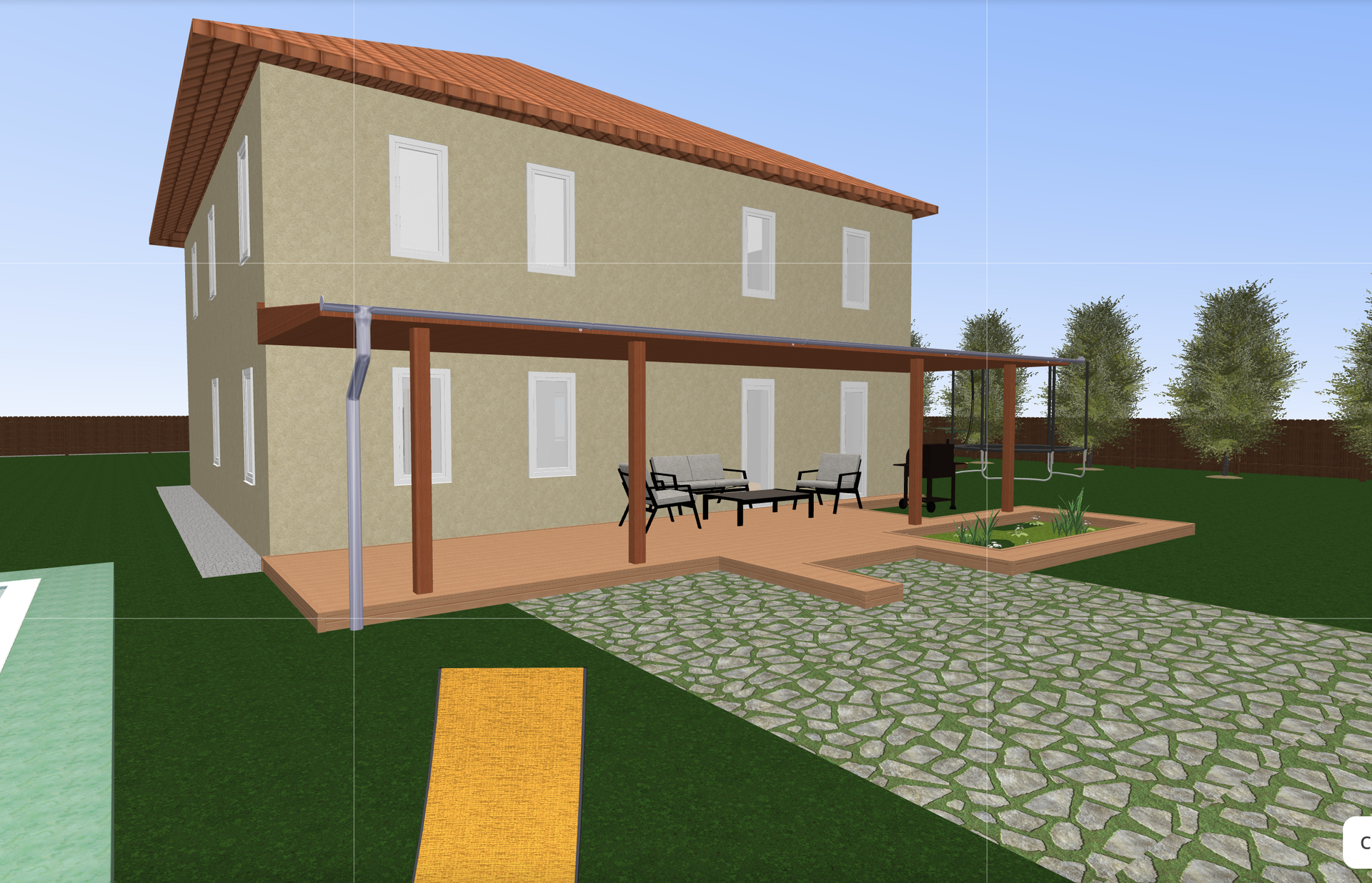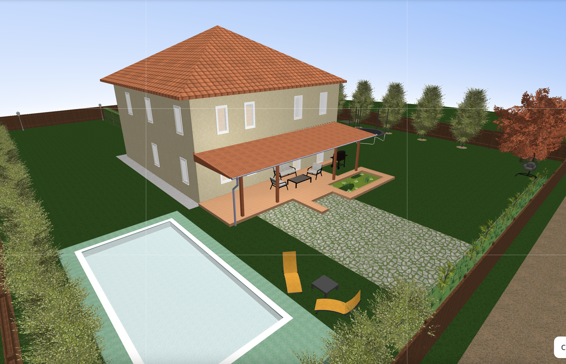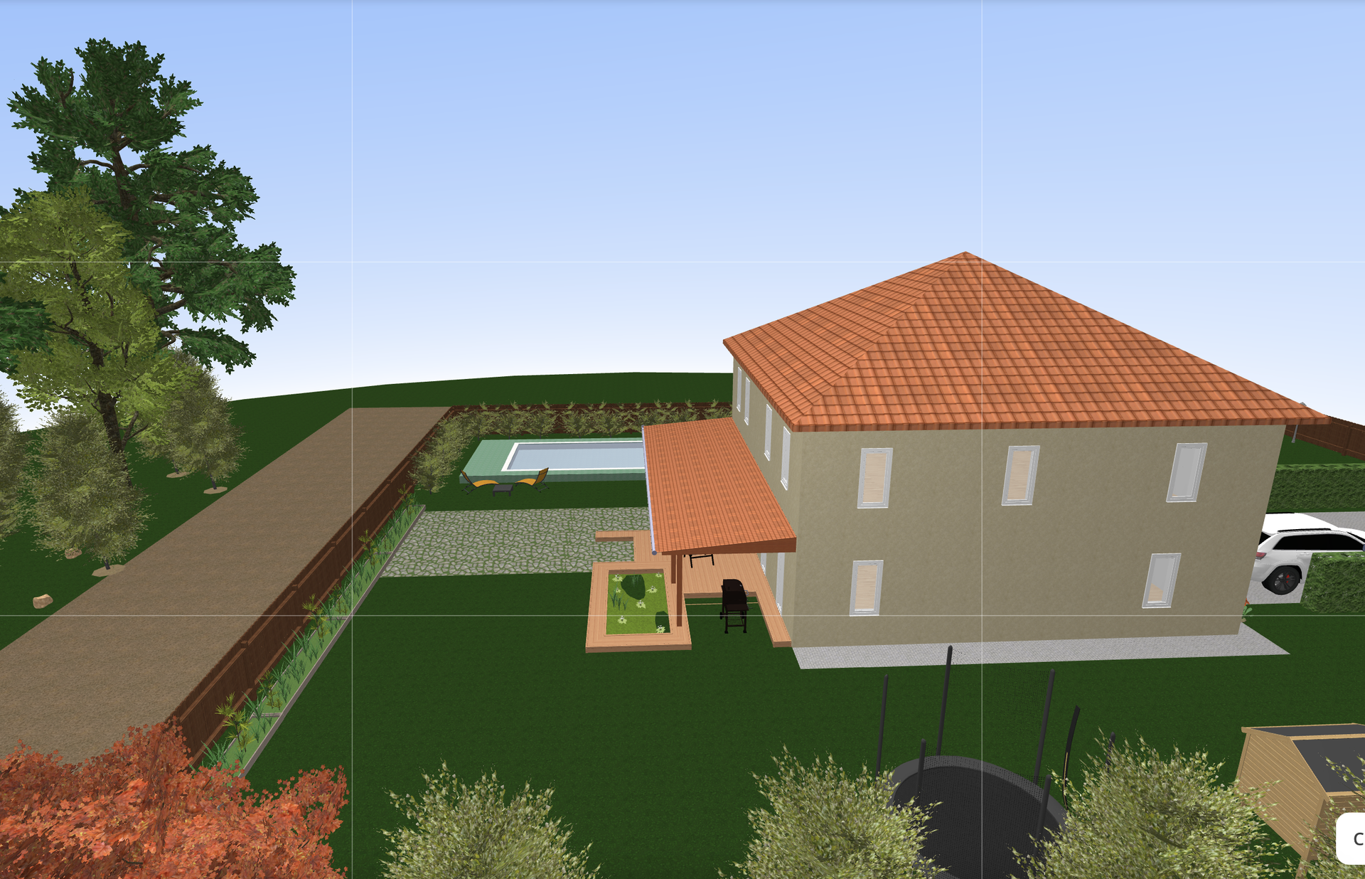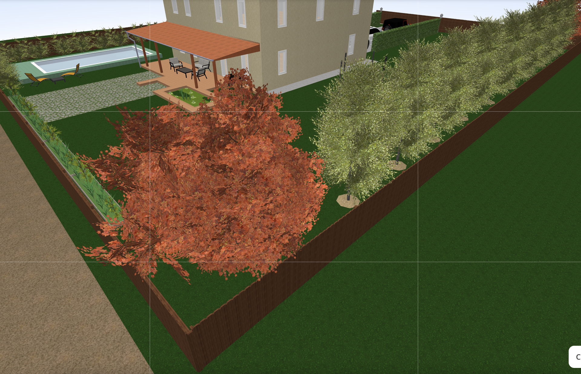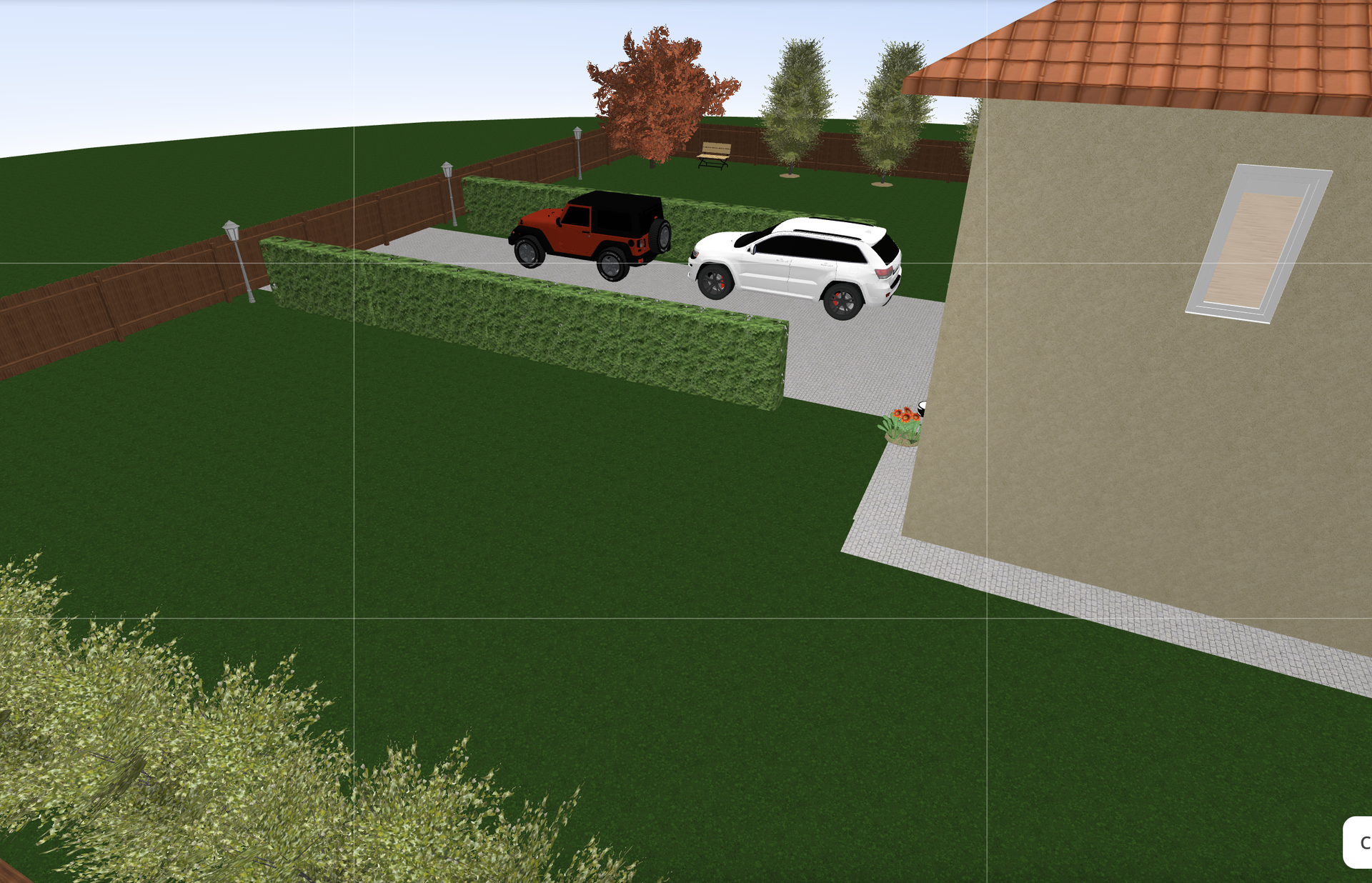 Участок ровный сухой. Дом расположен посередине: будет возможность построить заезд для двух-трех машин, за домом - большая площадь для зоны отдыха.