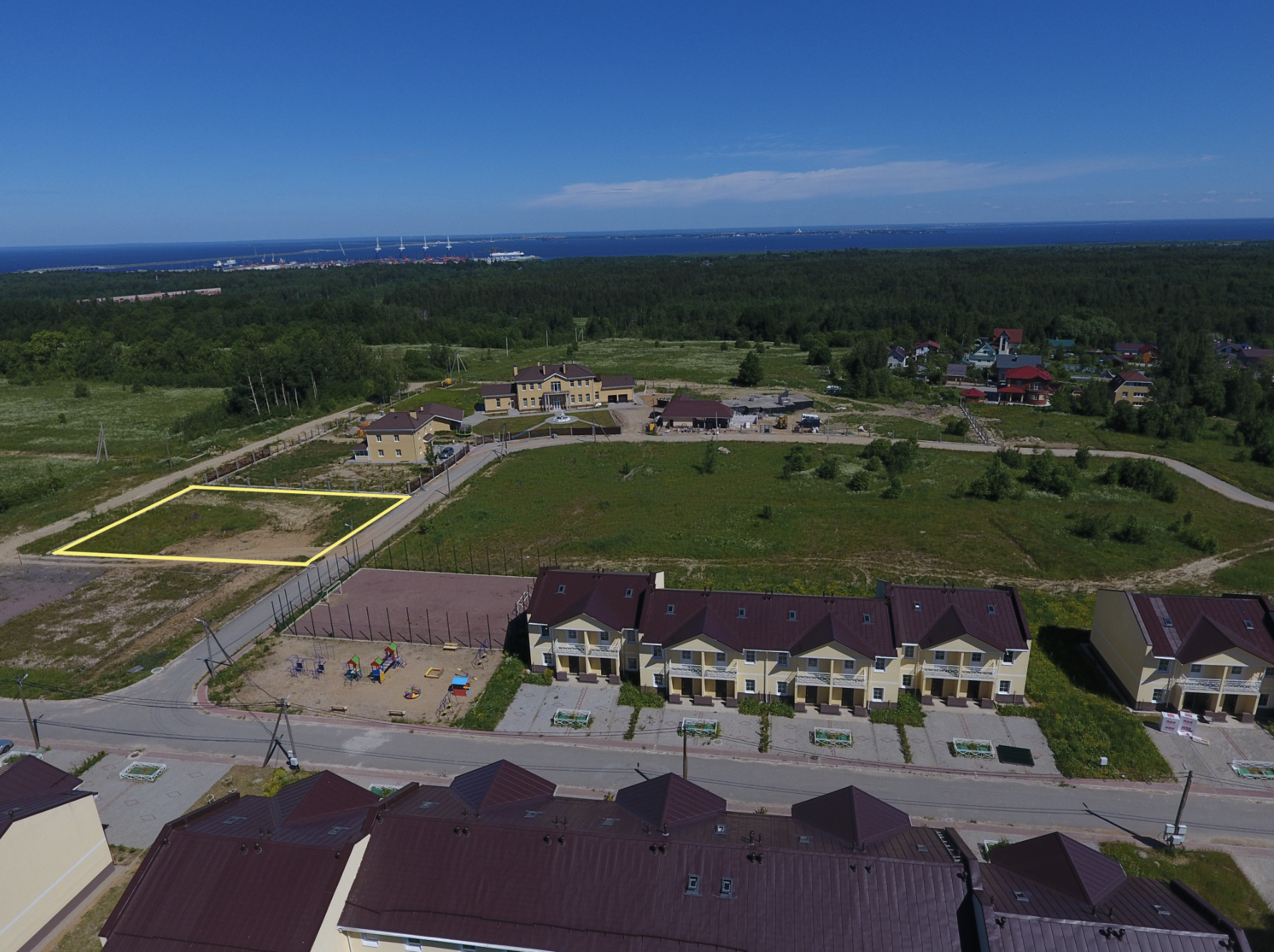 В поселке асфальтовые дороги. Закрытая территория. Поселок заселяется.