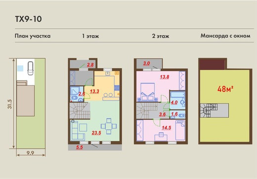 Площадь 1 и 2 этажа по 47 м., Высота потолков 3,0м.