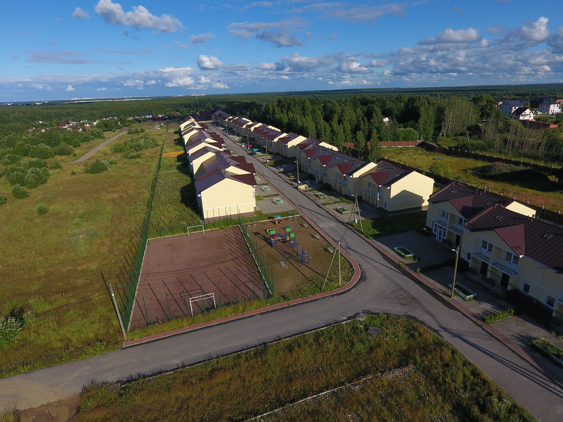 В домах: магистральный газ на стене дома, электричество 15 кВт, центральное водоснабжение, канализация, оптика.