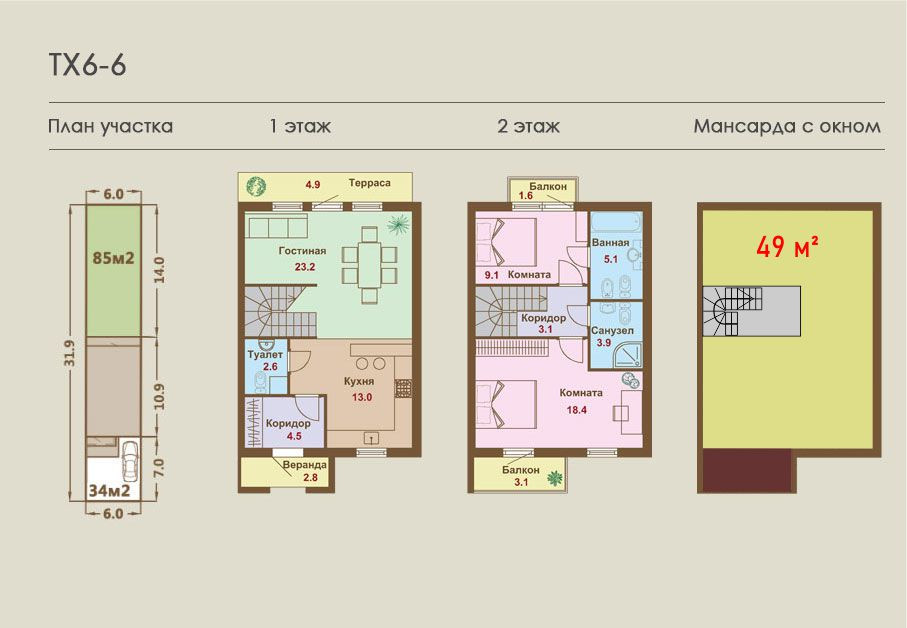 — Плoщадь этажа по 58 мeтров, Высота потолков 3 м.