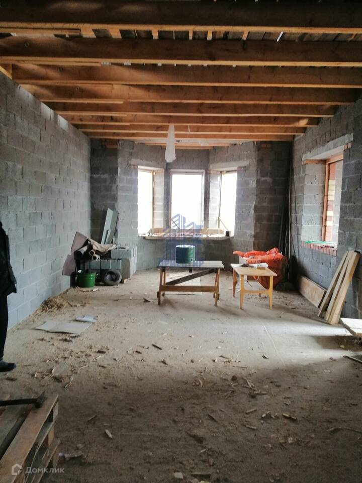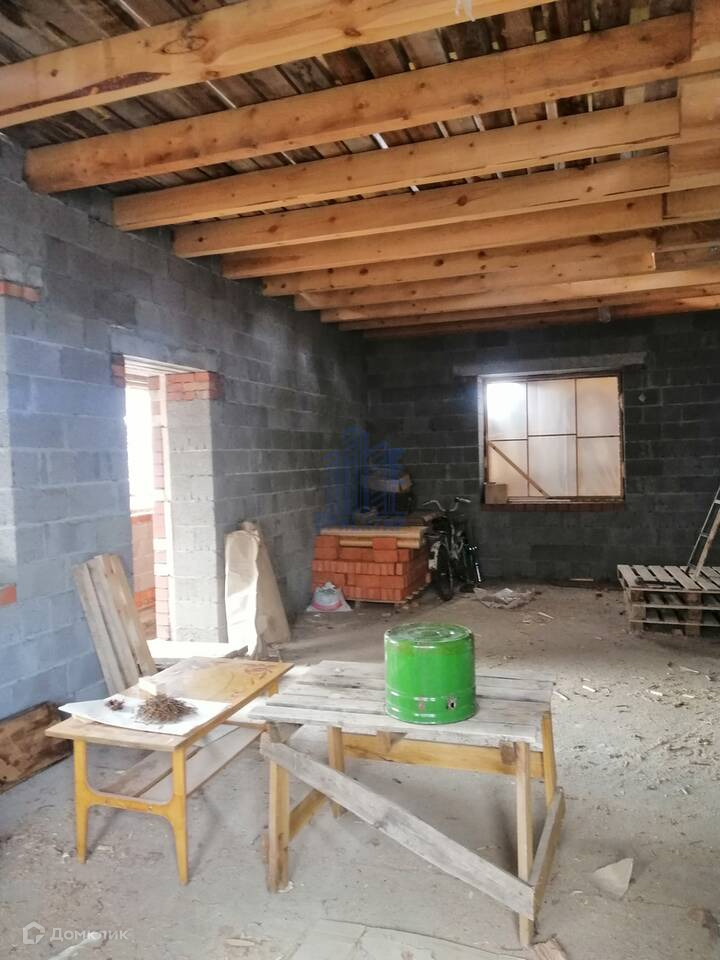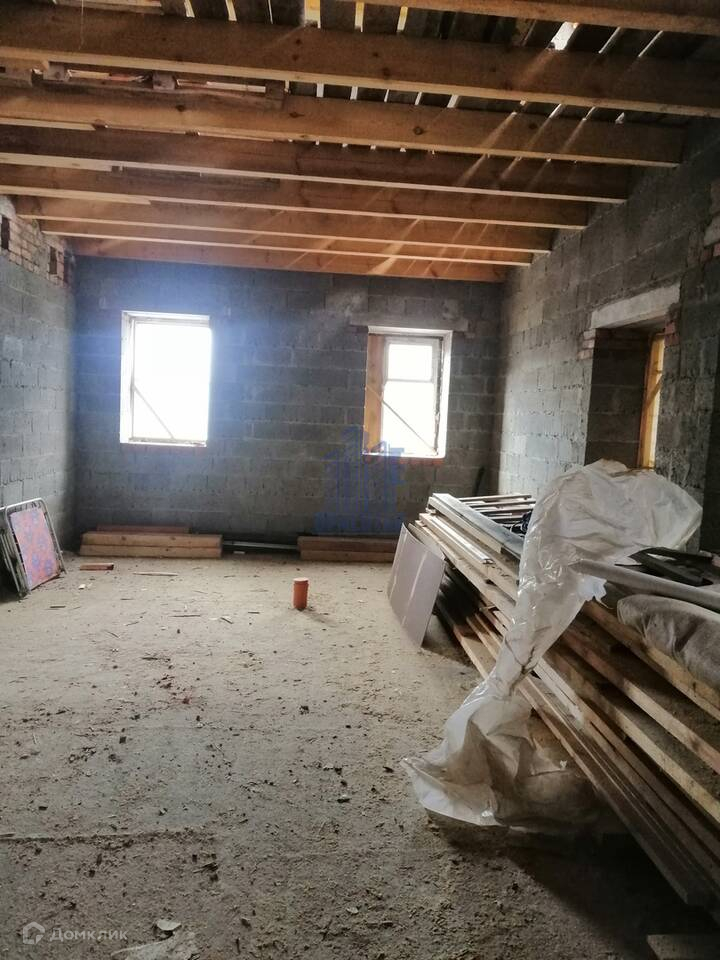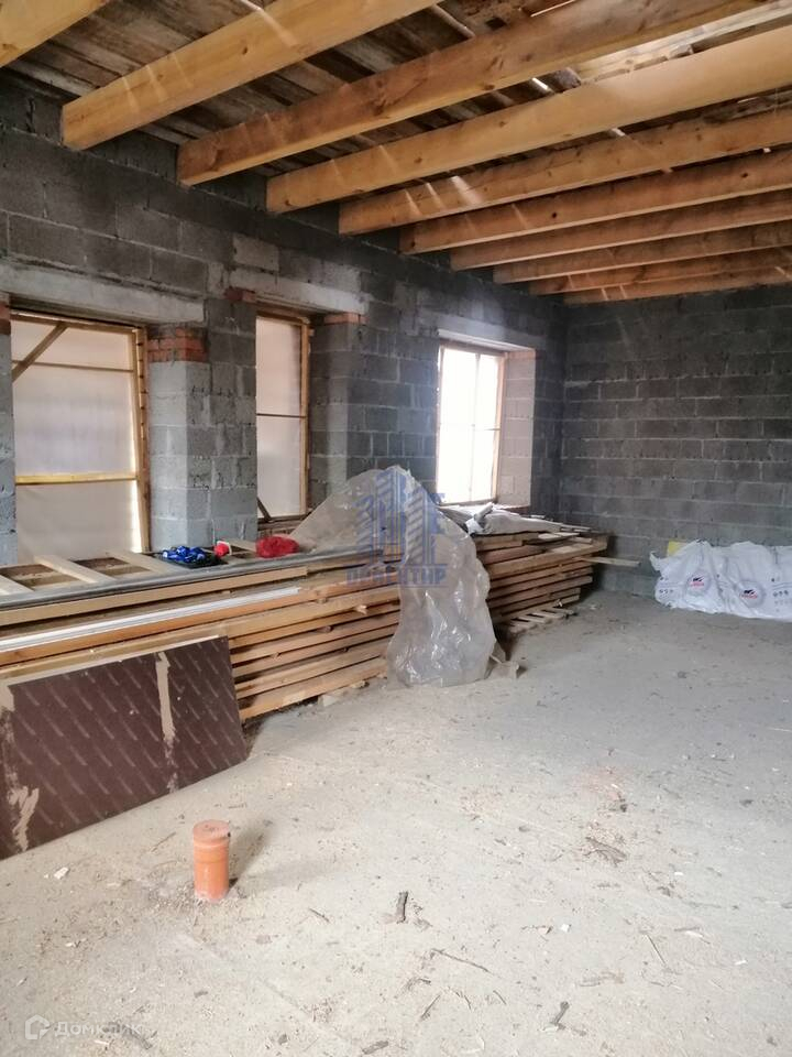 -Дом 2022 г. постройки. Установлен на свайно-ростверковый фундамент. Сваи диаметром-30 см. на расстоянии один метр друг от друга. Поверх залита монолитная плита, без погреба. Внутренние стены состоят из керамзитобетонного блока-40 см., утеплителя пеноплекс-5 см. Наружные стены из облицовочного кирпича. Крыша из металлочерепицы - 0,5 мм. Межэтажное перекрытие - деревянные балки. Система вентиляции из кирпича с переходом в сэндвич трубы.