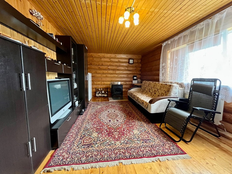 Площадь дома без учета лоджии и террасы составляет 97.1 кв.м.. Свежевыкрашенный дом с утепленными швами, сосновый, рубленый сруб, зимний лес из Кировской области. Центральное водоснабжение (артезианская вода), канализация - колодец (4 кольца), газовый котел Vaillant, дровяной камин в гостиной.