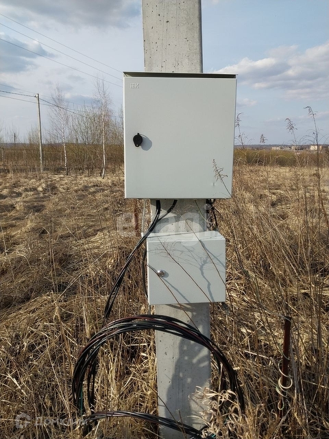 Установлен электрический столб со щитом, колодец.