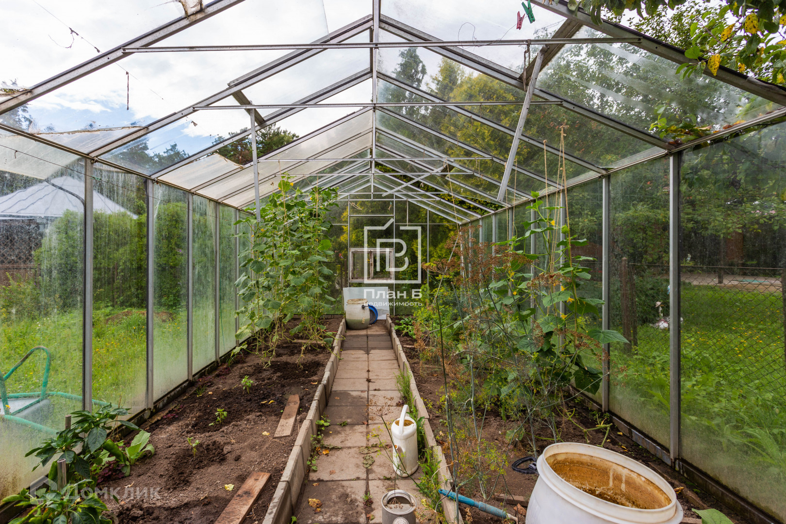 16 соток ухоженной территории: беседка, своя парковая зона с выходом в сосновый бор, парники, гараж.
