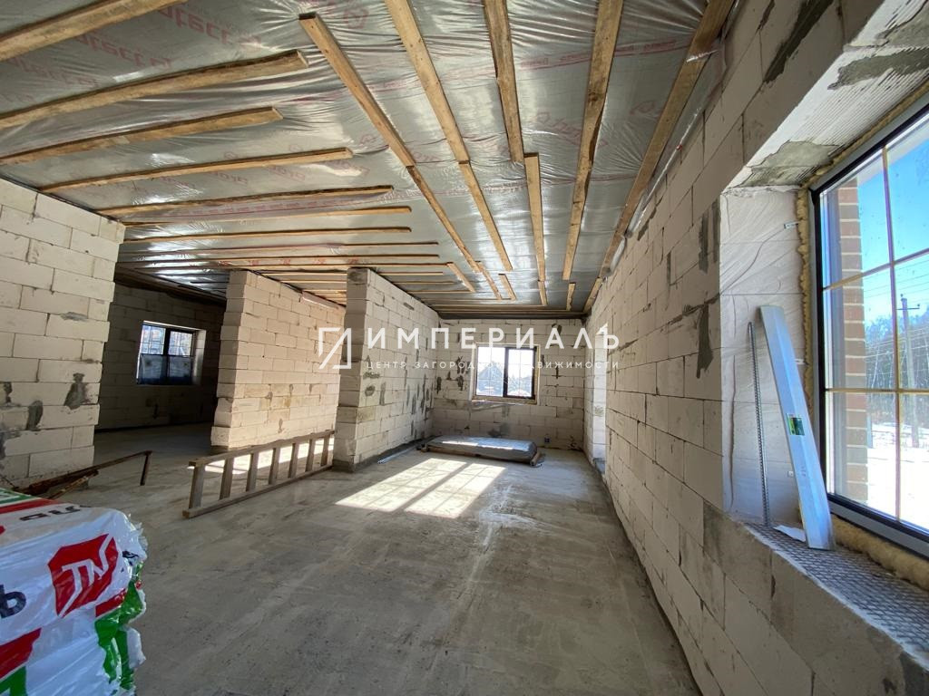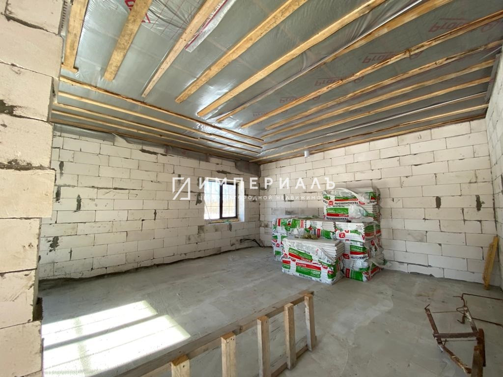 Дом: 101,4 кв.м, фундамент-фундамент, монолитная плита 350 мм, стены-газосиликатный блок, внешняя отделка  - браеровский кирпич, баварская кладка на белом шве, высота стен в чистовую будет 3,1 м. Крыша холодная, утеплитель по потолку 250 мм сделан, крыша-металлочерепица и водостоки Grand Line.  Пластиковые окна с ламинацией с 2-х сторон. Выдвижная люк-лестница на чердак. Отмостка.