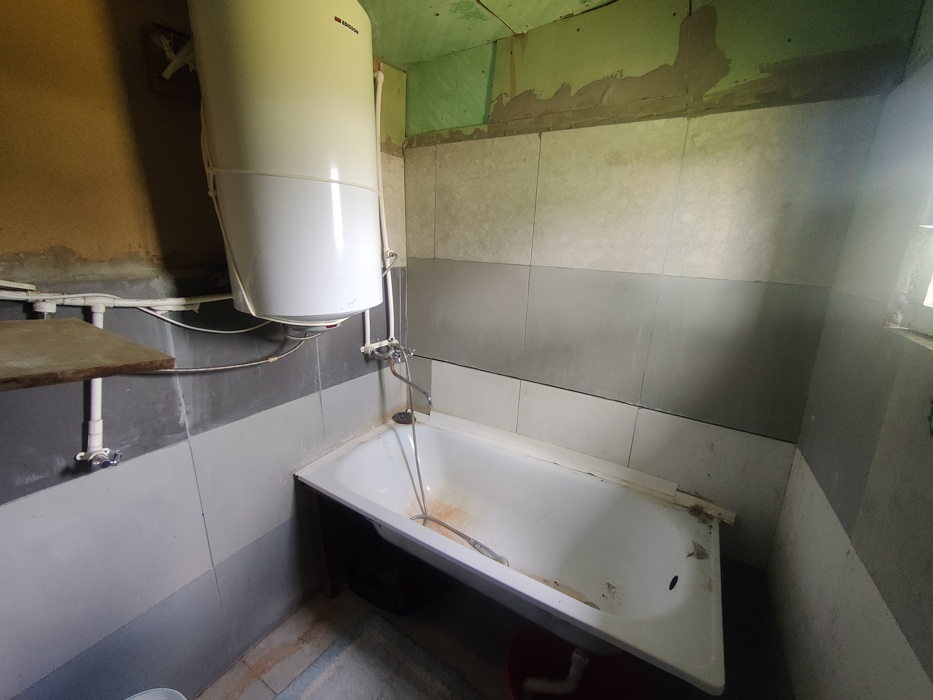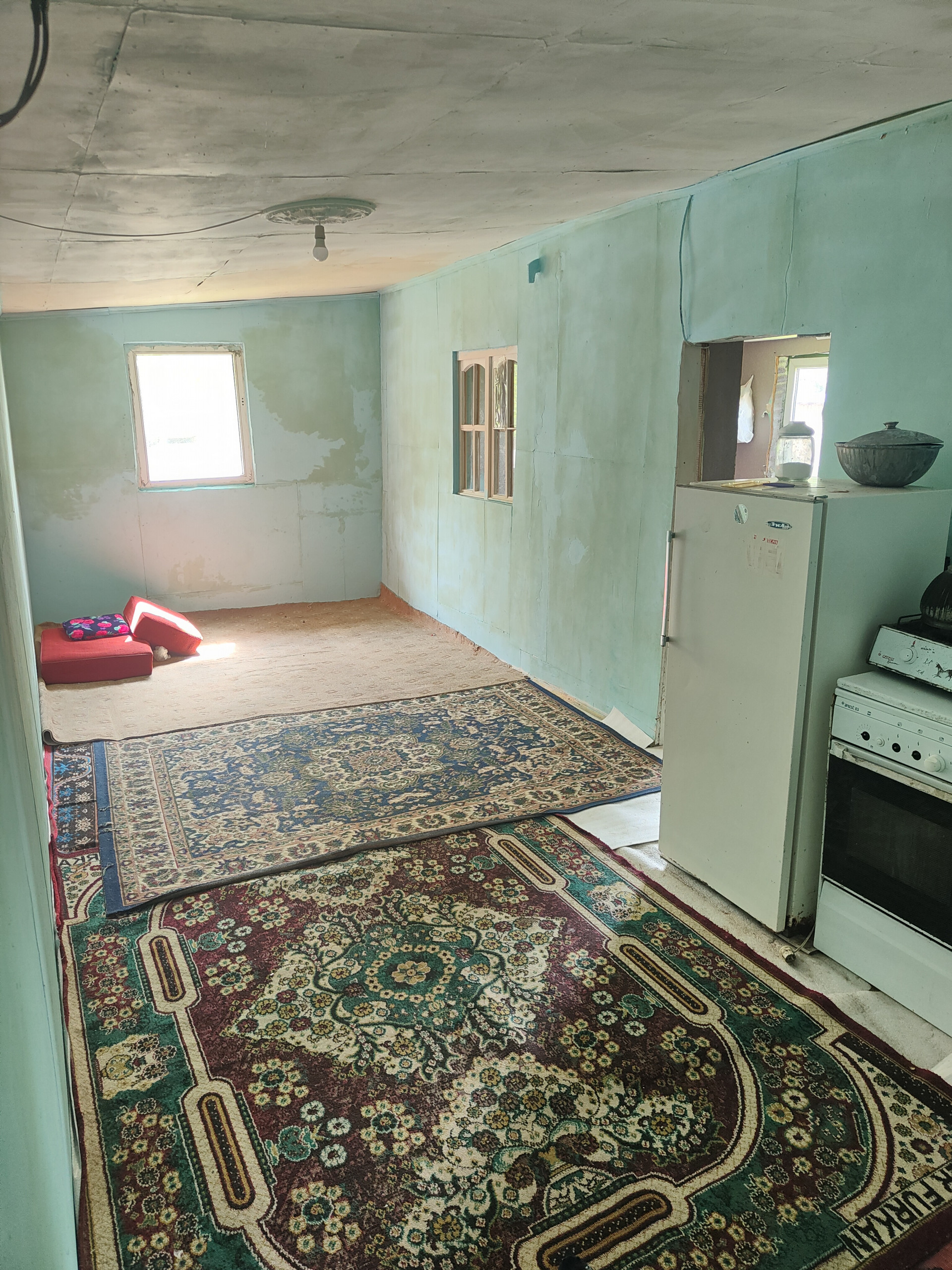 2)    1-о этажный дом 9 х 6 метров. Две комнаты, кухня, с/у совмещен. Электричество в доме. Газ – баллон для газовой плиты в доме. С/у в доме. На горячую воду установлен бойлер.
