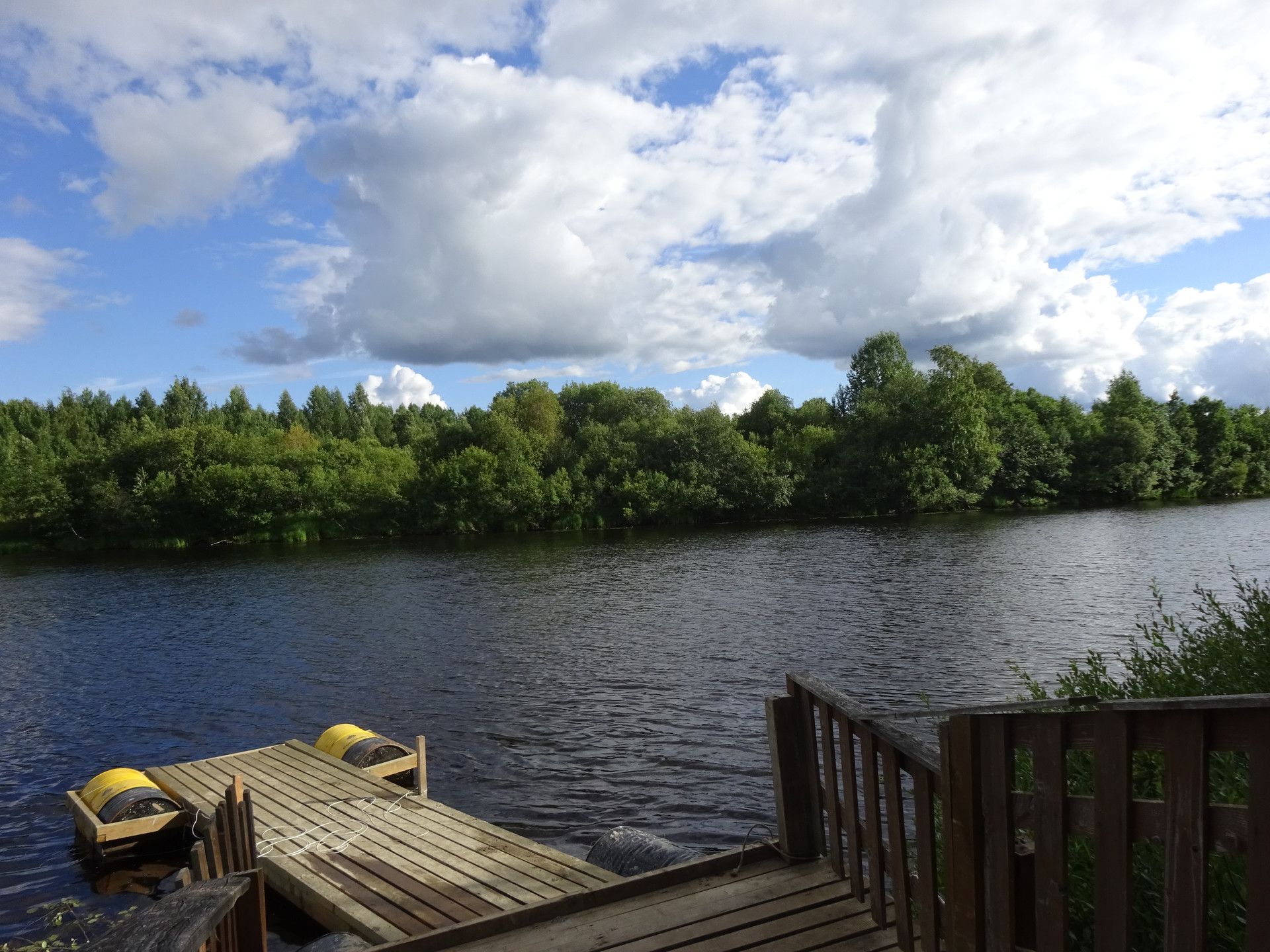 Расстояние от дома до реки 5 минут спокойным шагом.