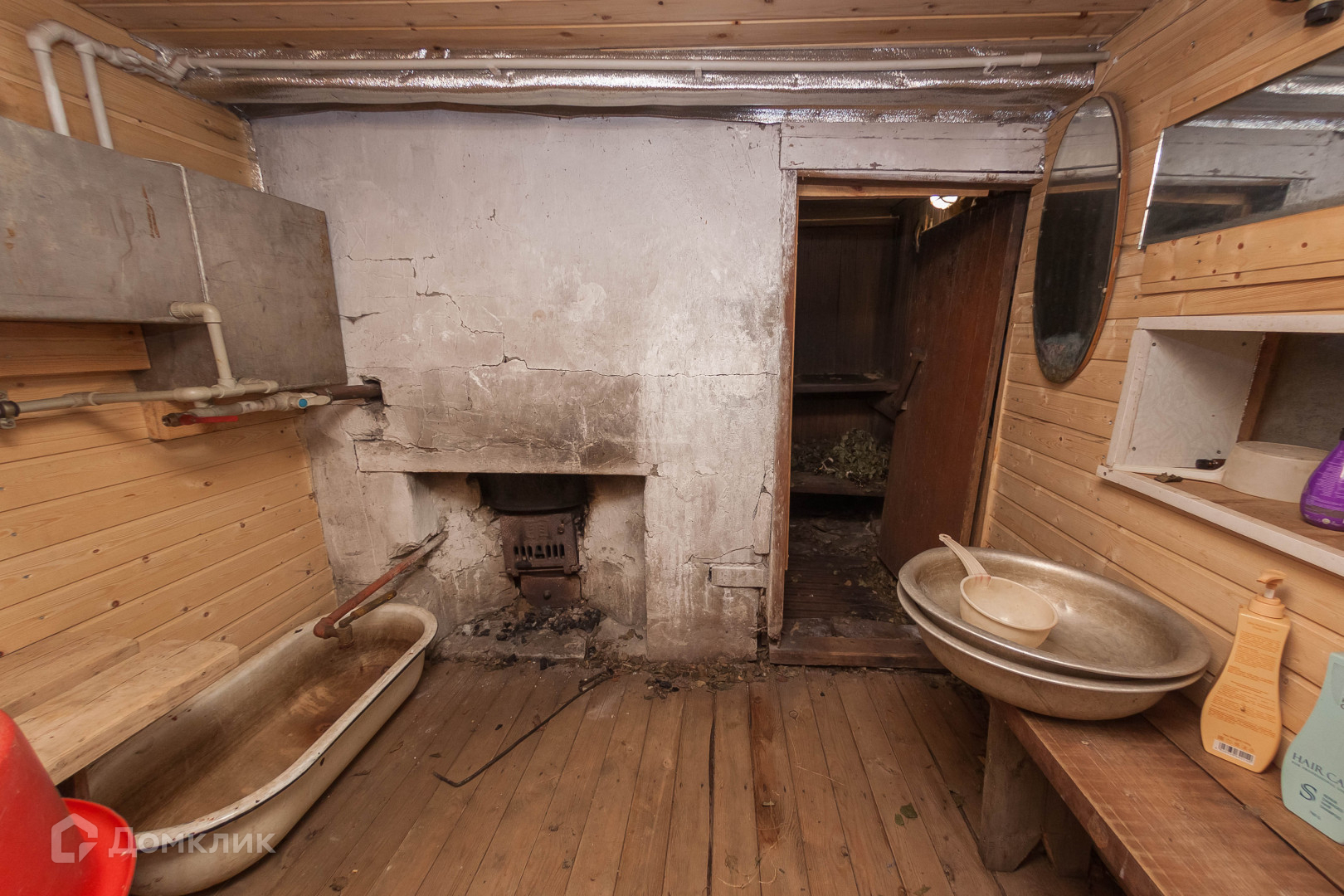 - Просторная баня с верандой (есть возможность купания в реке после парилки, от дороги, выход к реке закрыт декоративными кустами) проведен летний водопровод.