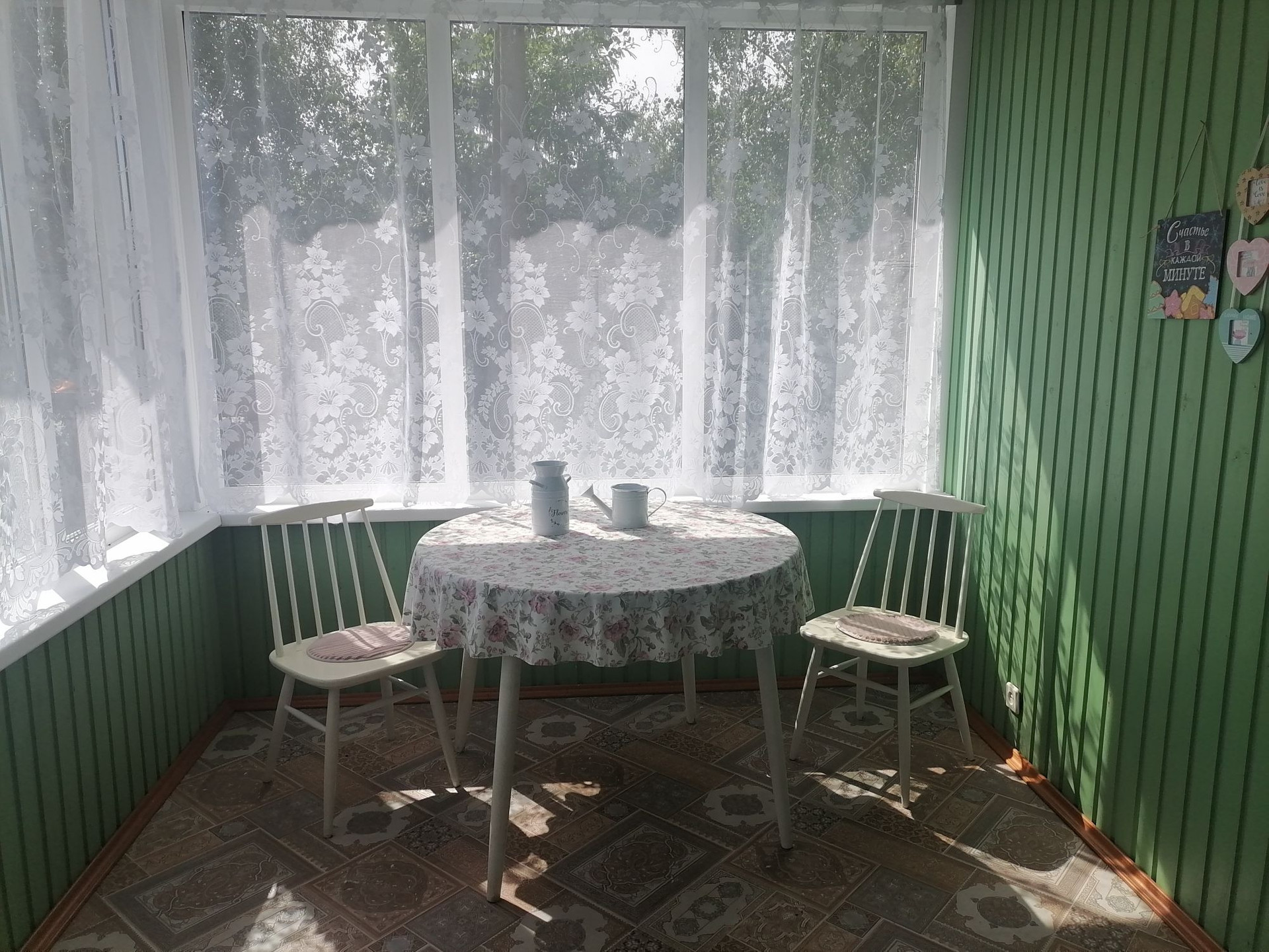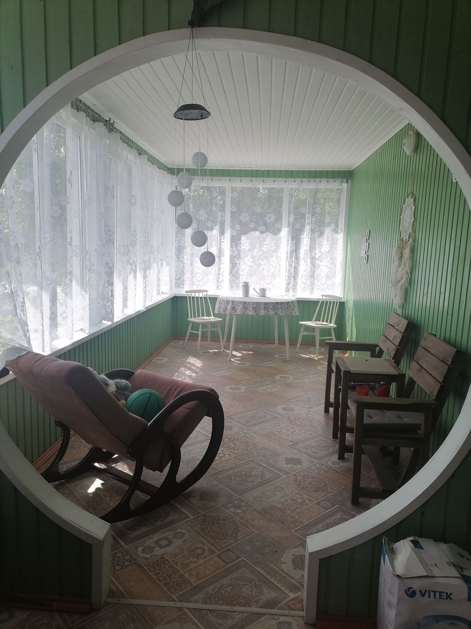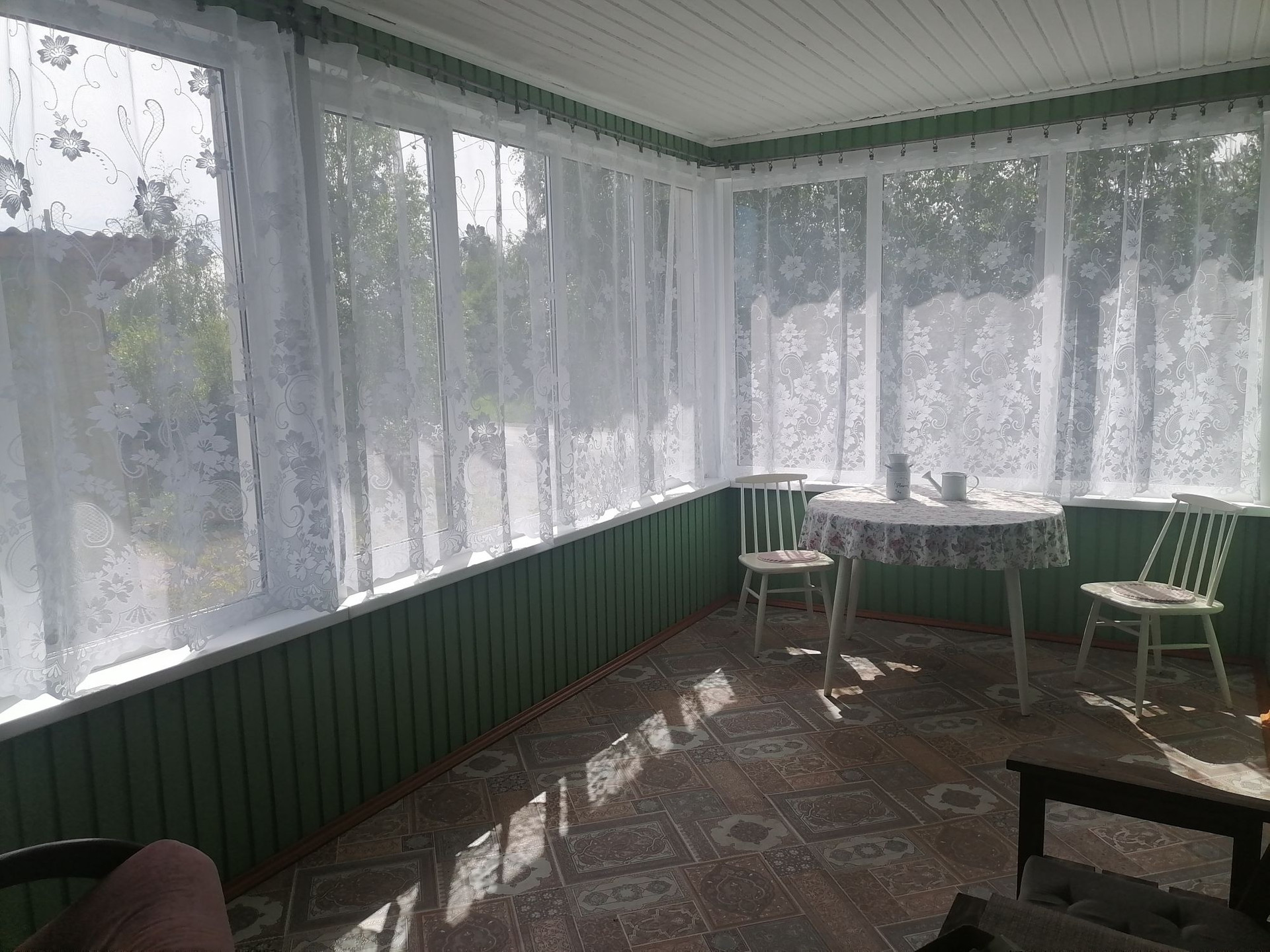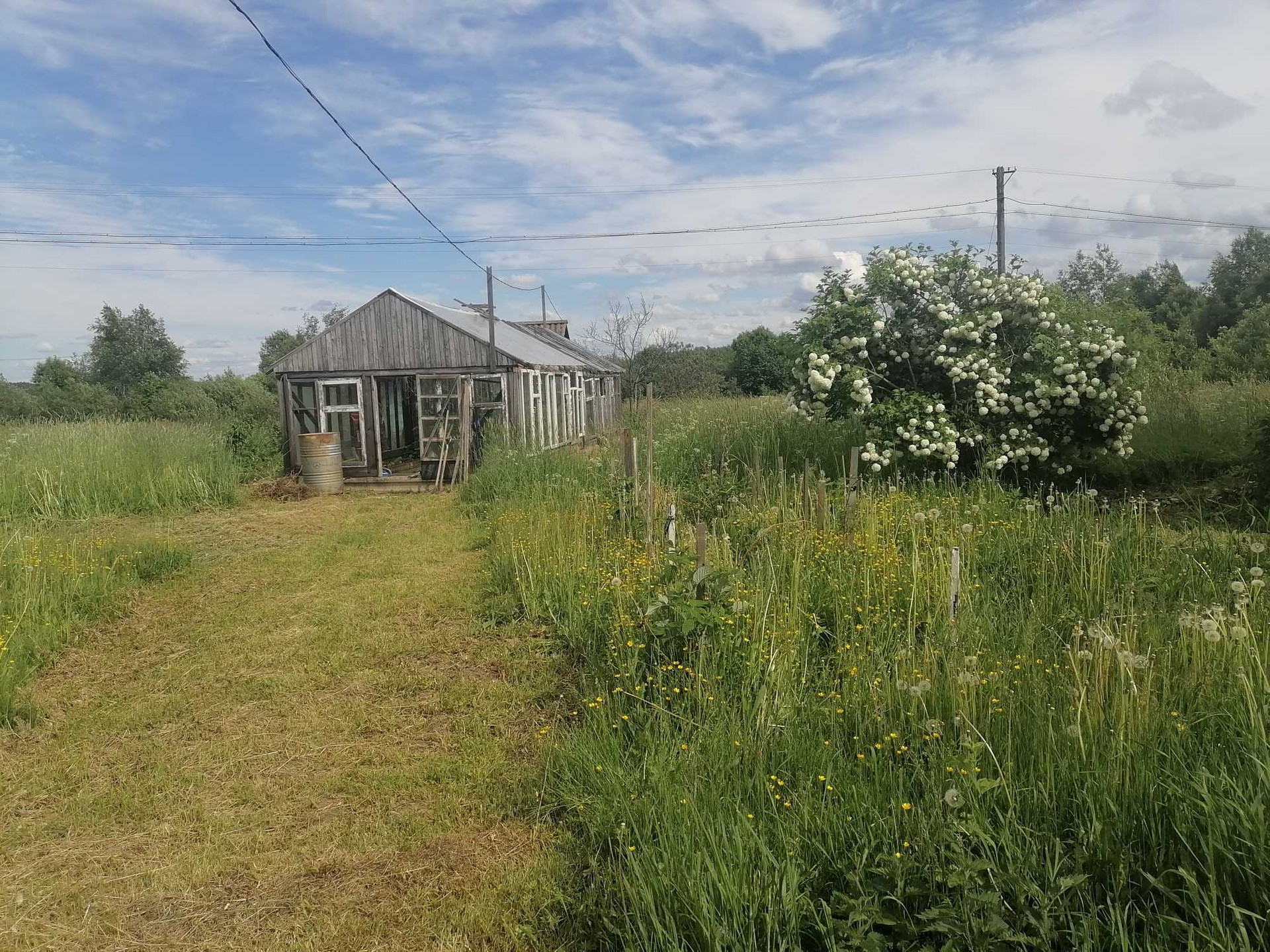 Баня, большой гараж, теплица, летний домик за теплицей и красивая терасса, наполненная светом и уютом.