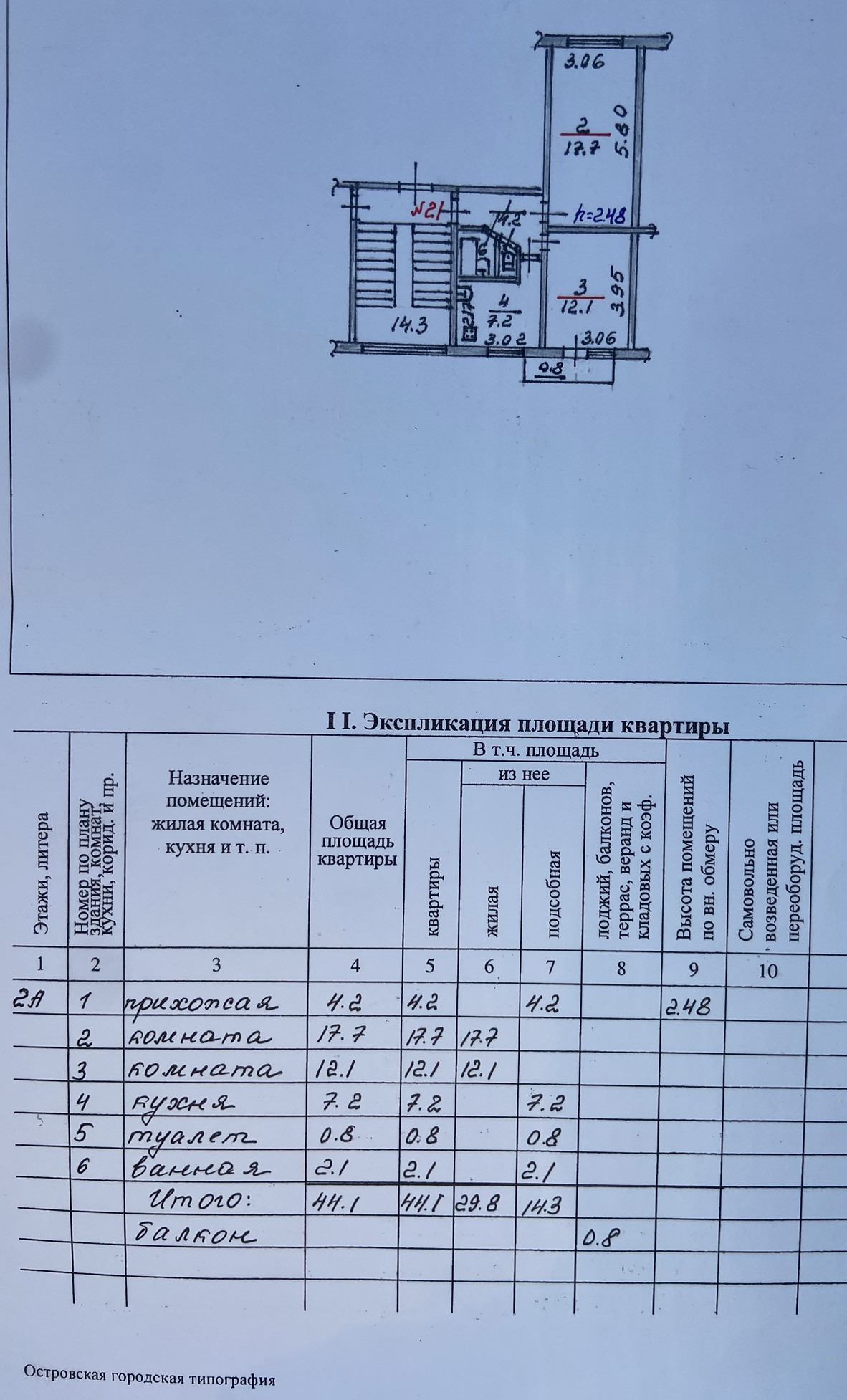 Общая площадь 44.1 м2