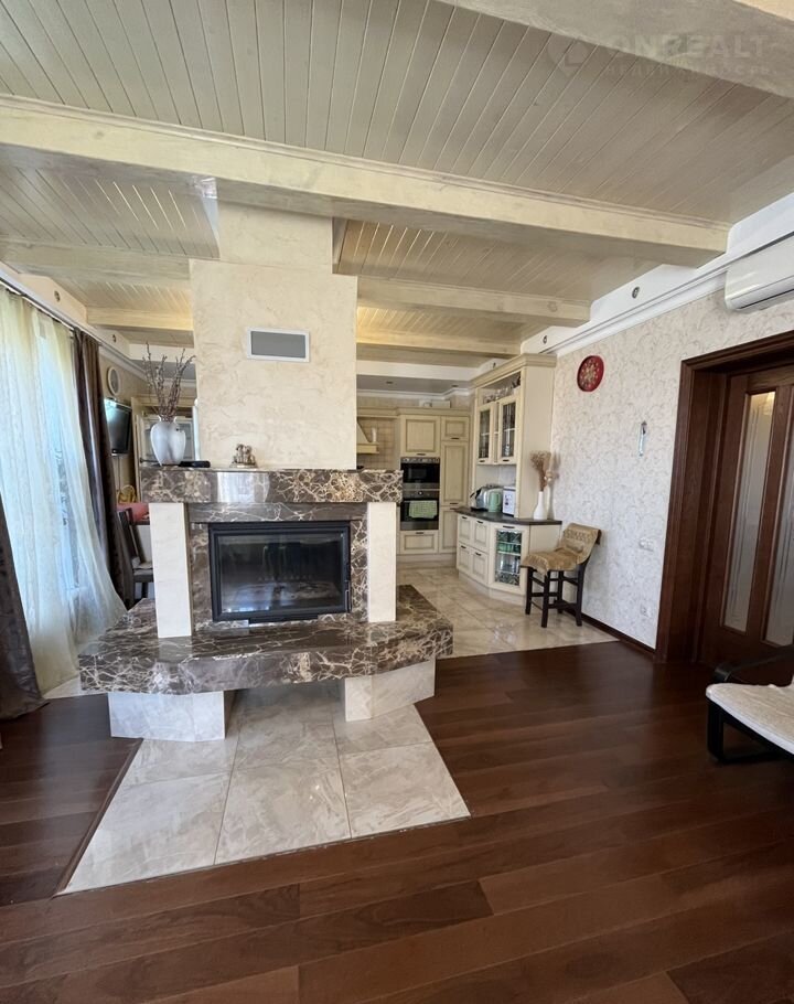 Зону кухни от гостиной разделяет дровяной камин, облицованный натуральным камнем, что позволит Вам наслаждаться уютными вечерами.