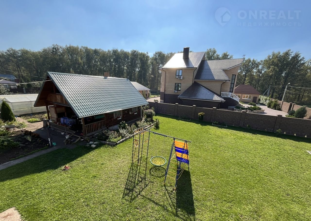 Территория усадьбы полностью ухожена, подстрижена трава, прекрасные клумбы с цветами, имеются посадки деревьев и кустарников. Для ведения огородного хозяйства есть теплицы. Напротив входной группы детская игровая площадка для самых маленьких хозяев.