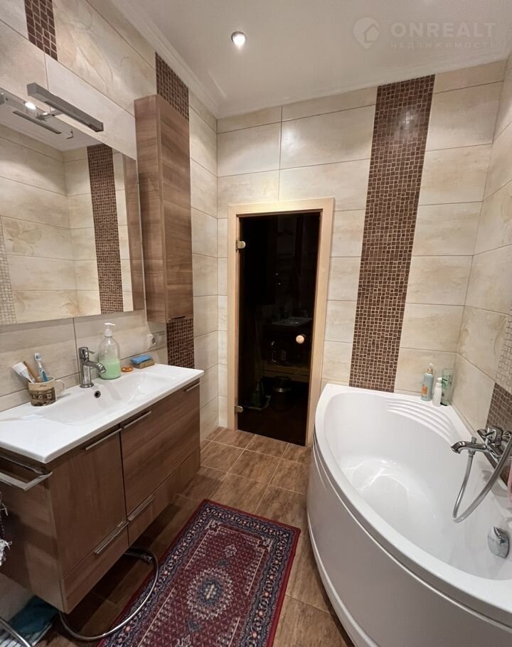 Два санузла: на первом и втором этажах. На первом этаже электрическая сауна обшита липовой вагонкой. Качественная итальянская сантехника и плитка.