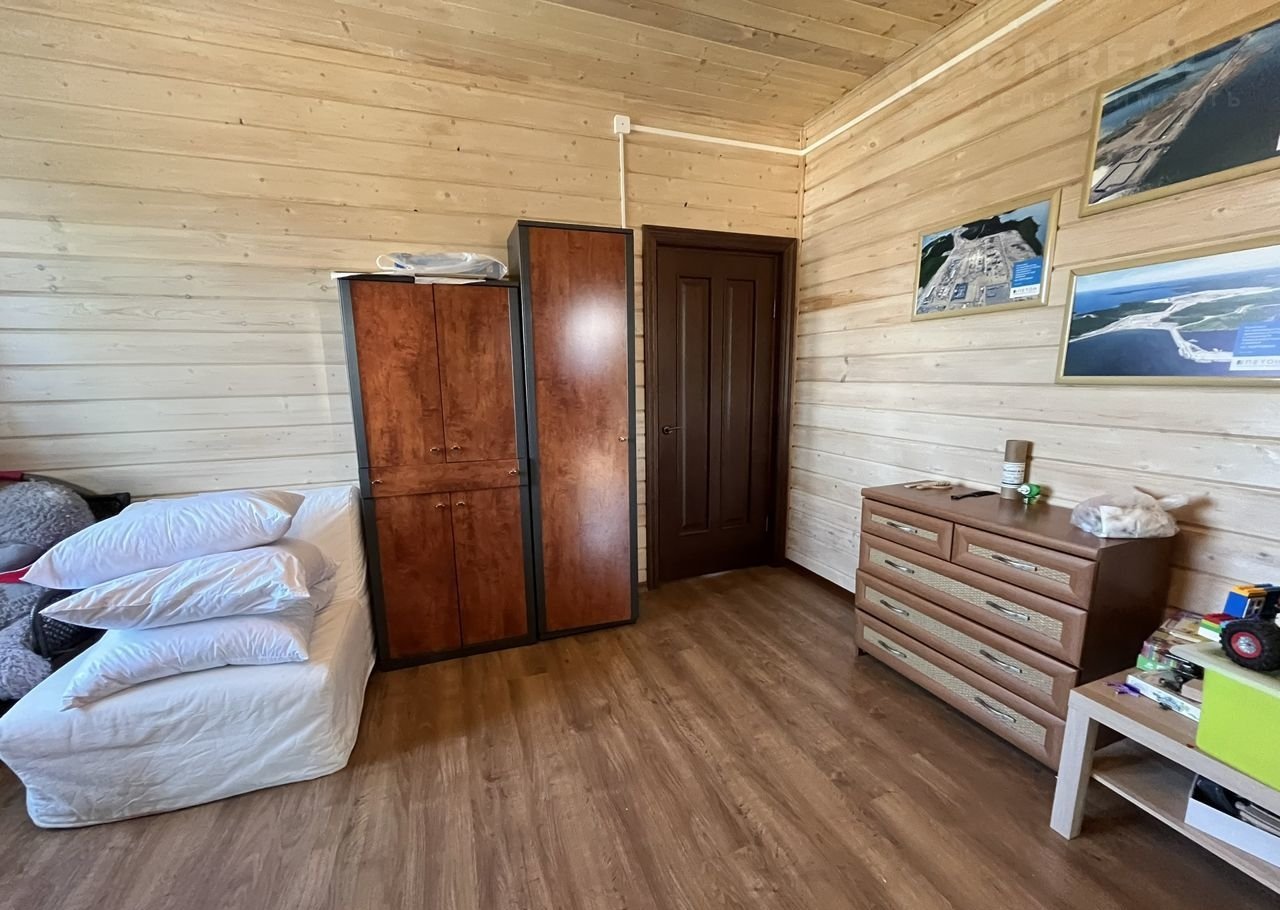 Бревенчатый гостевой дом также полностью оборудован всем необходимым: имеется кухня, техника электролюкс, мебель, санузел с душевой кабиной. На террасе дома летняя кухня.