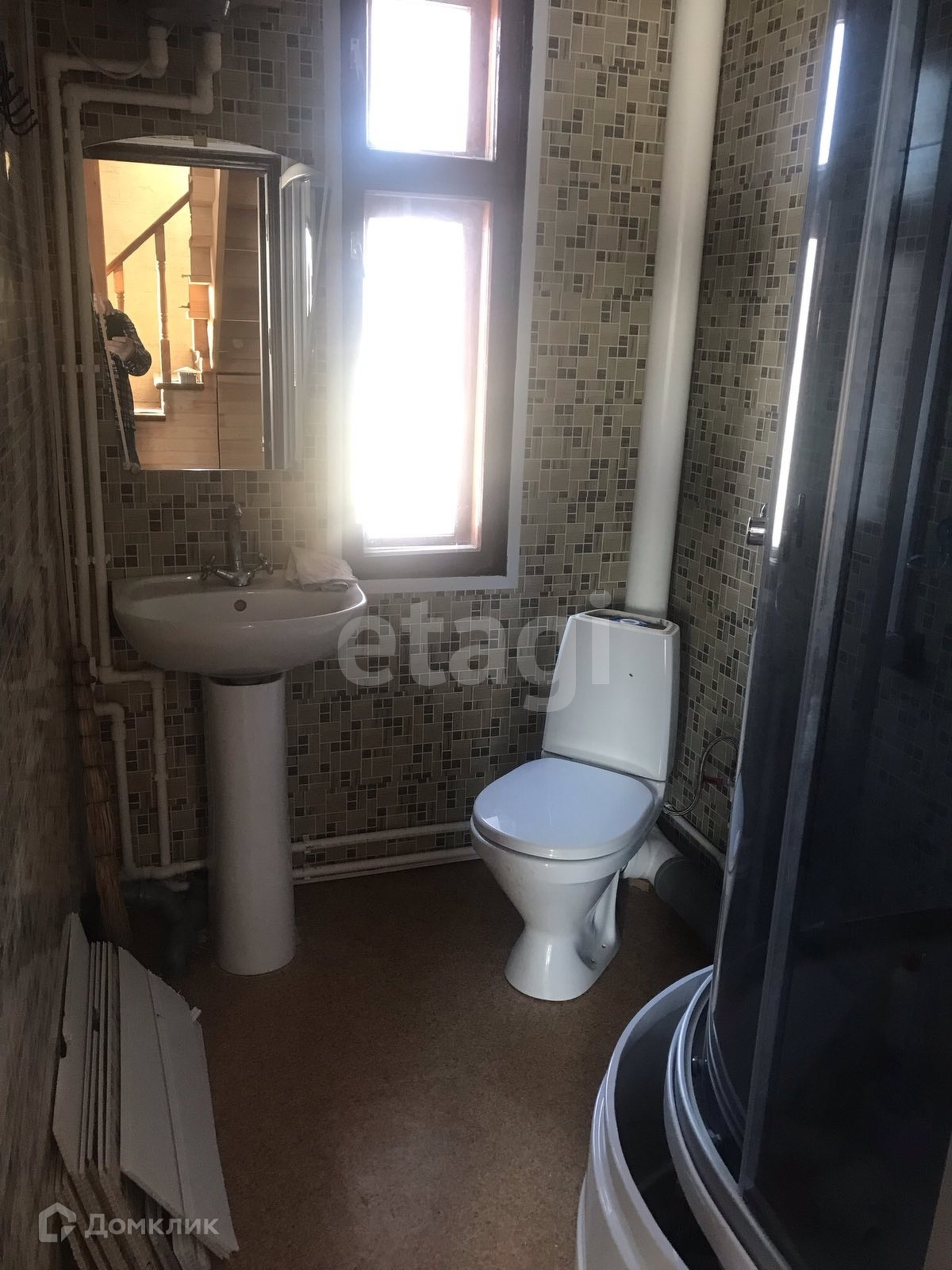 На втрм этаже две комнаты и санузел. На первом ванная комната совмещенная 4м*2, унитаз, душевая кабина, раковина, установлен бойлер.