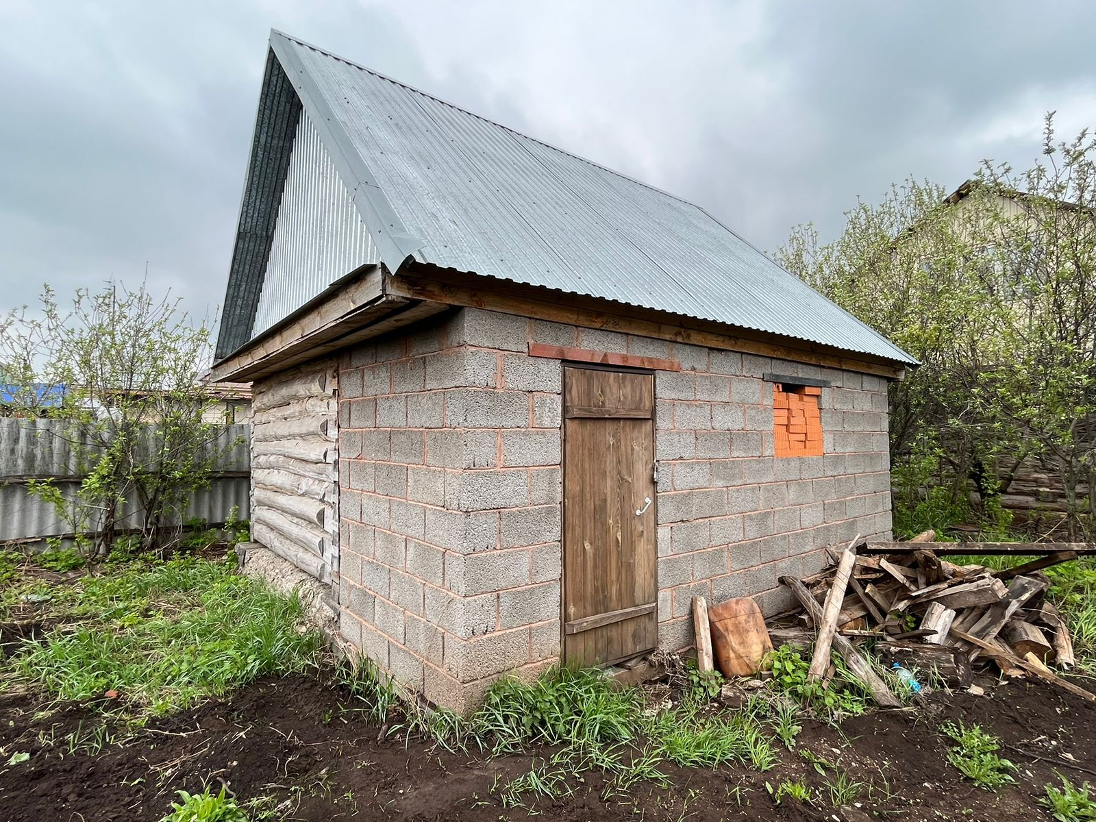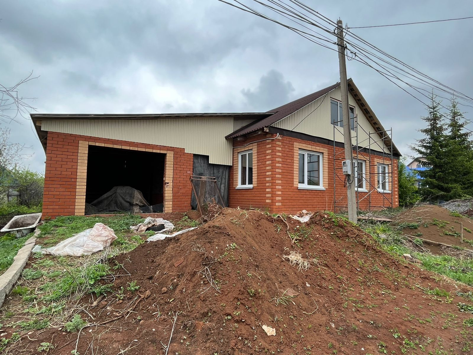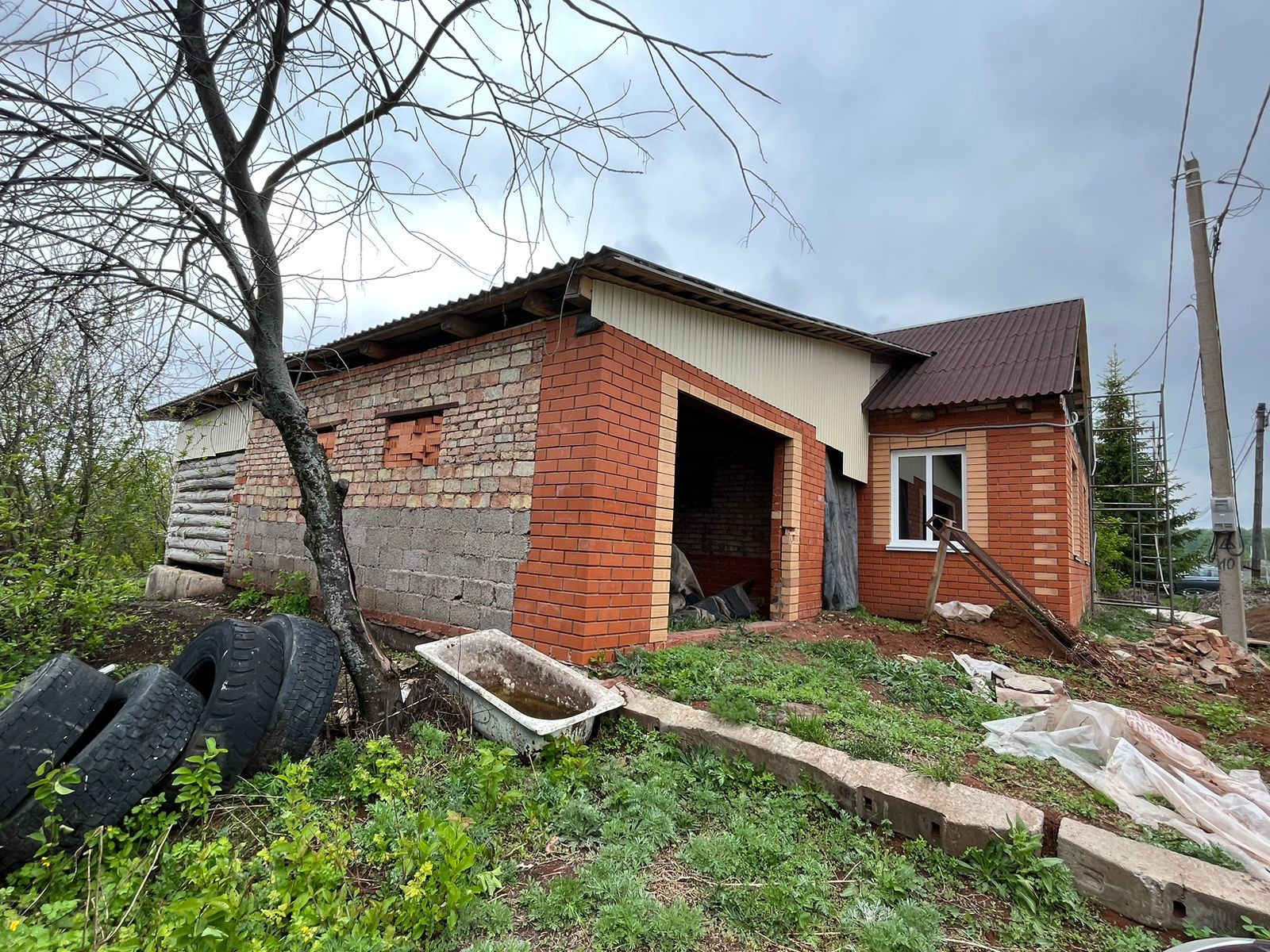 На участке находится недостроенный дом под крышей