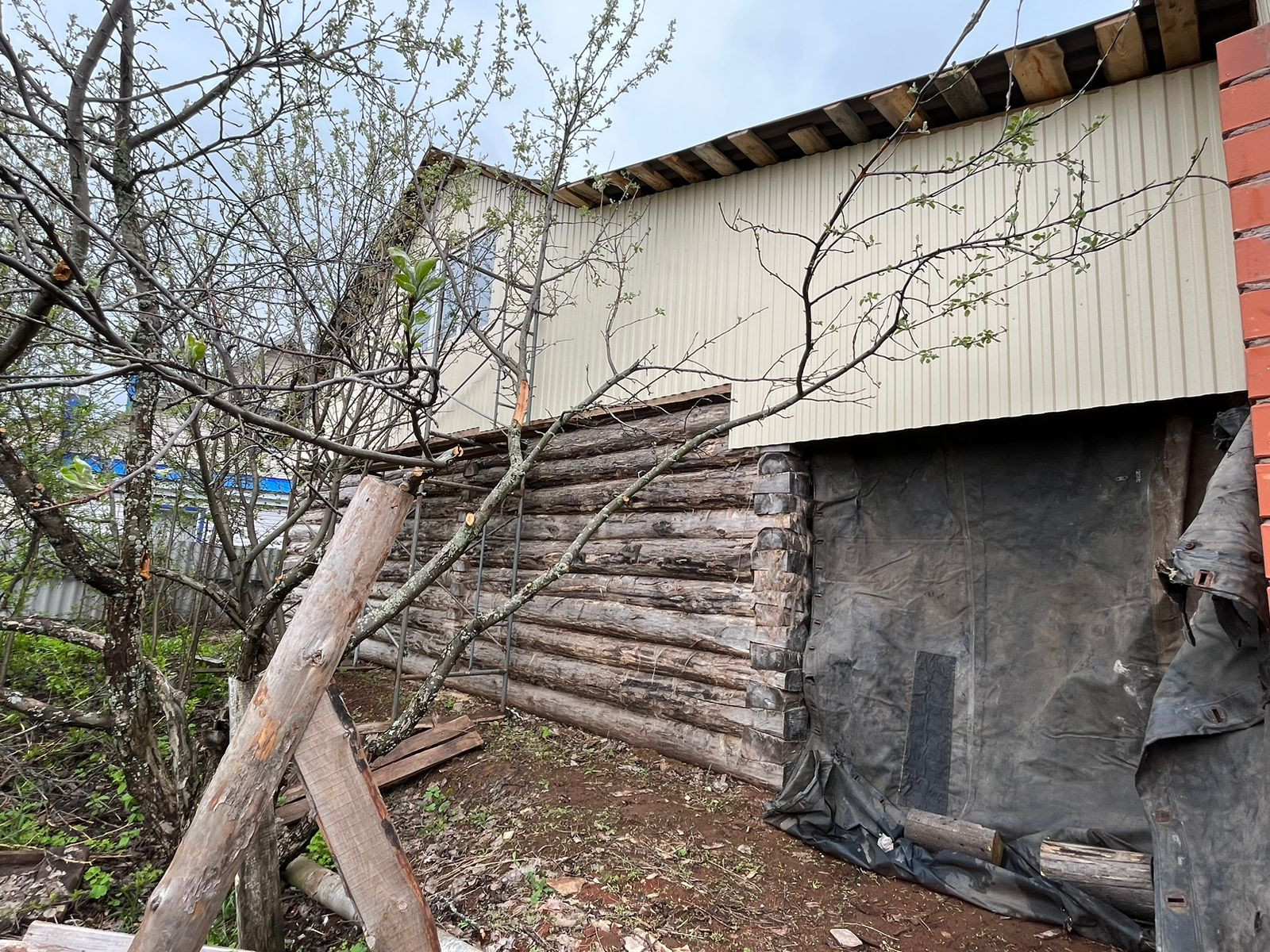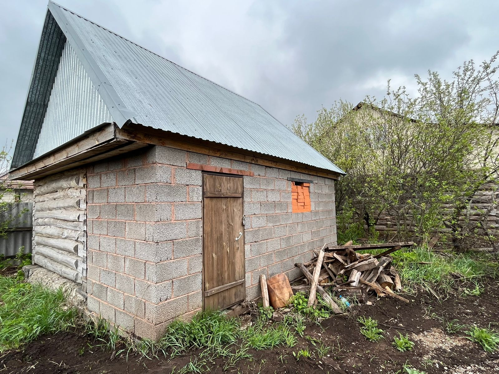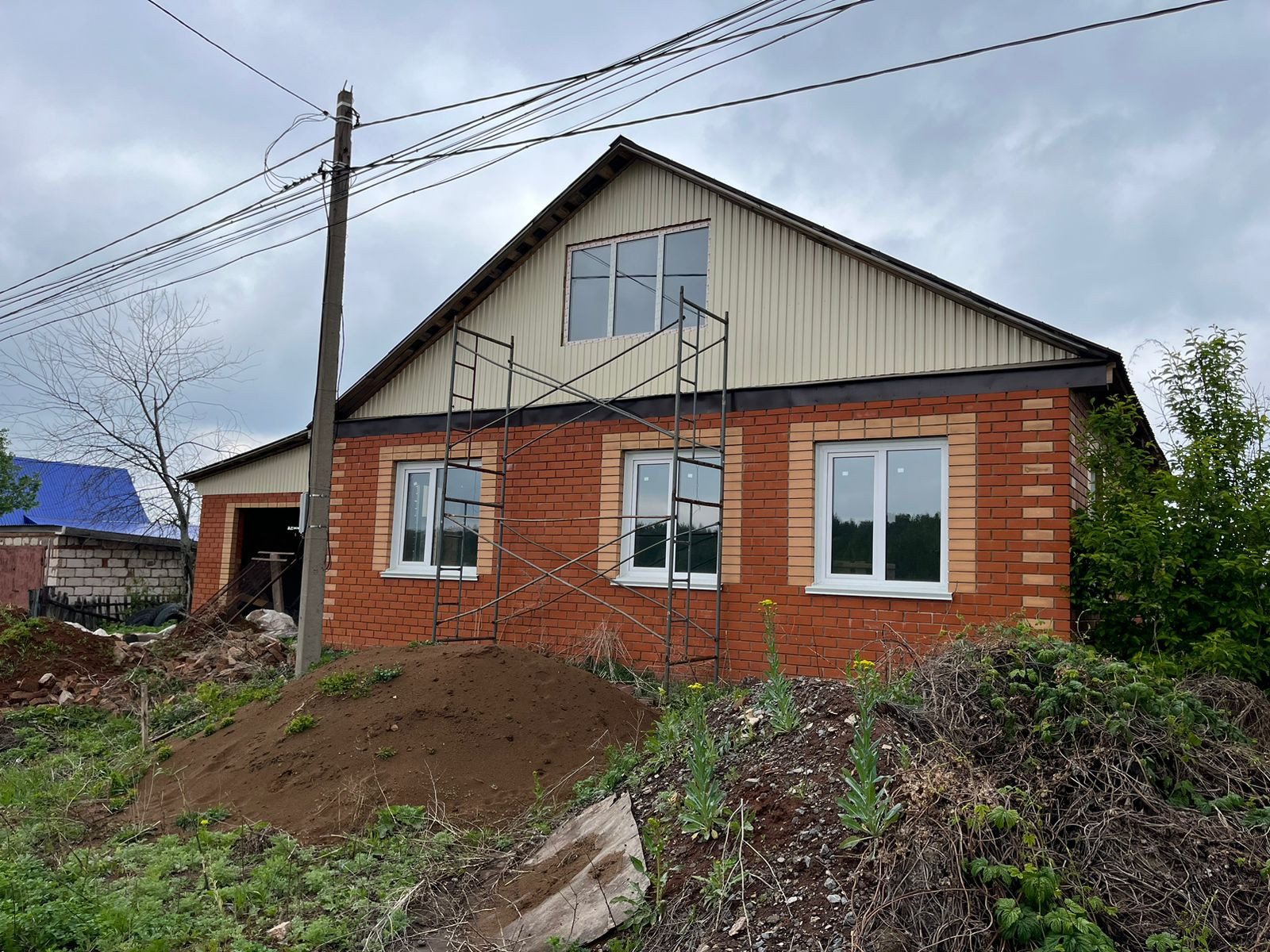На участке находится недостроенный дом под крышей