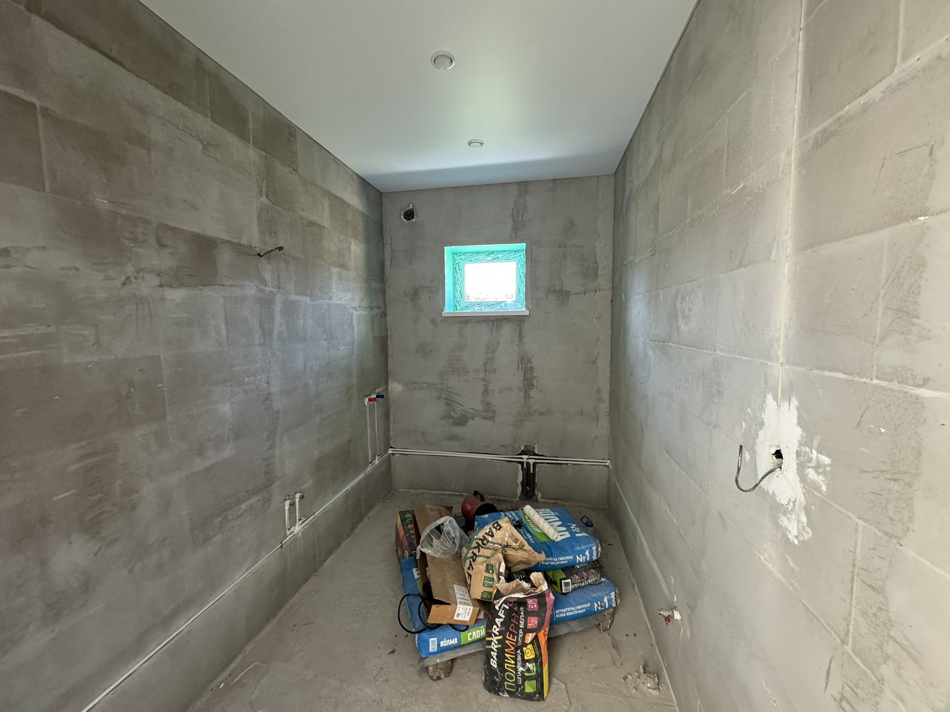 стены выровненные по маякам сухими штукатурными смесями, подготовка под поклейку обоями