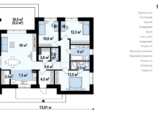Общая площадь: 113 м2