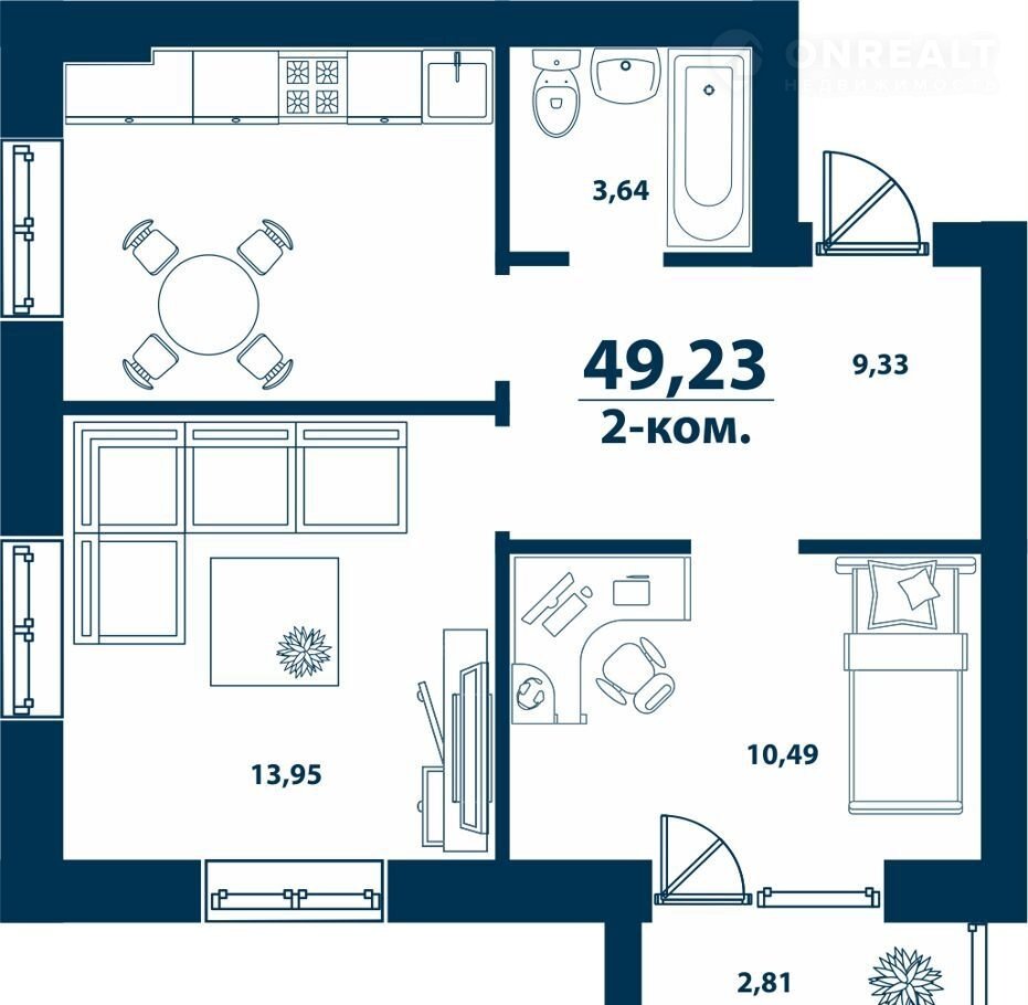 Общая площадь 49.2 м2