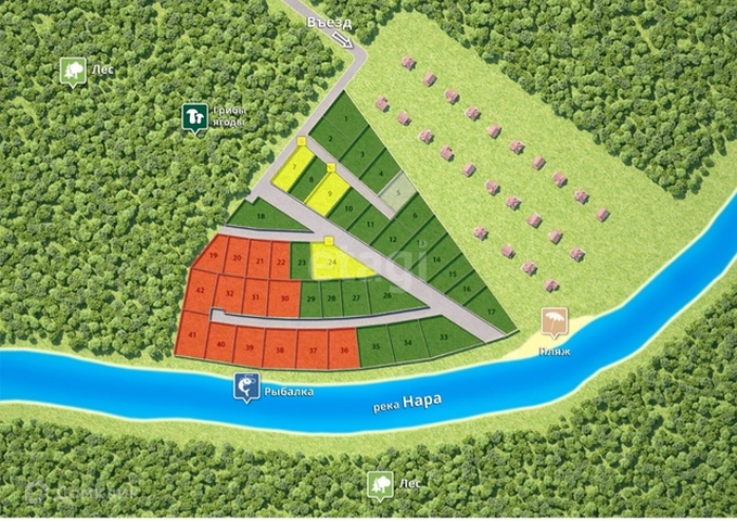 Расположение в лесу, у реки