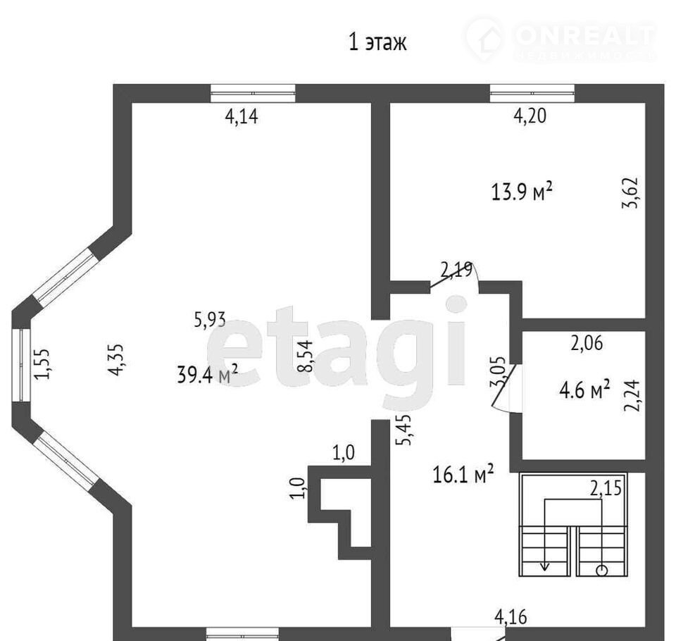 На 1-ом этаже дома удобно расположены: просторная светлая гостиная 39,4 кв.м. с практичной эркерной зоной и печью-камином, применен разноуровневый свет, вместительная кухня 13,9 кв.м. с установленным функциональным кухонным гарнитуром на усиленной стене, газовым котлом, встроенной газовой варочной панелью, электрическим духовым шкафом, вытяжкой кассетного типа и посудомойкой 45 см, совмещенный санузел 4,6 кв.м. с душевой кабиной, инсталляцией и широкой раковиной, зона прихожей 16,1 кв.м. с вместительным шкафом-купе.