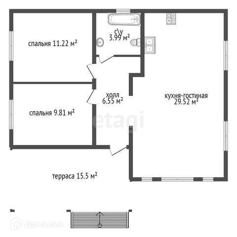 1-этажный дом, 88 м2, на продажу в деревне Виркино, 41К-222